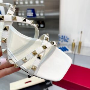 Valentino Rockstud Flat Sandals with Straps in White Leather