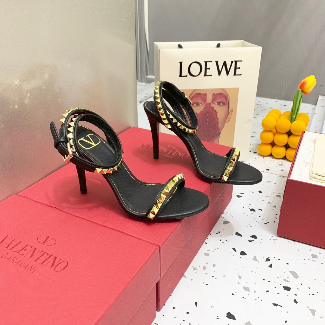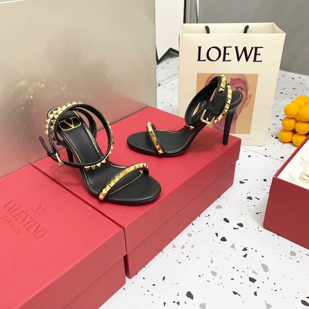 Valentino Rockstud No Limit Sandal 100mm In Black Lambskin