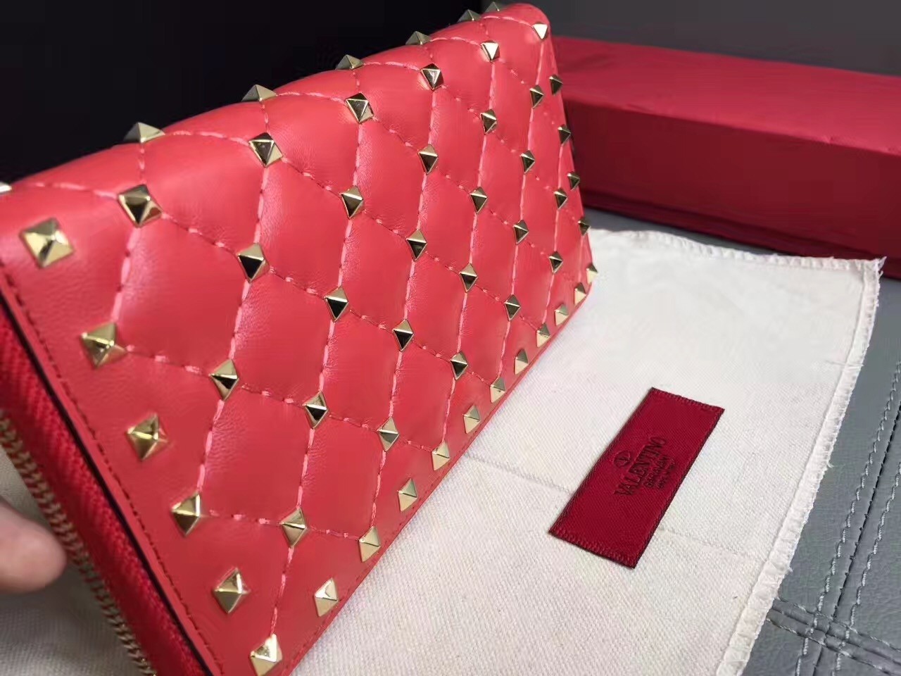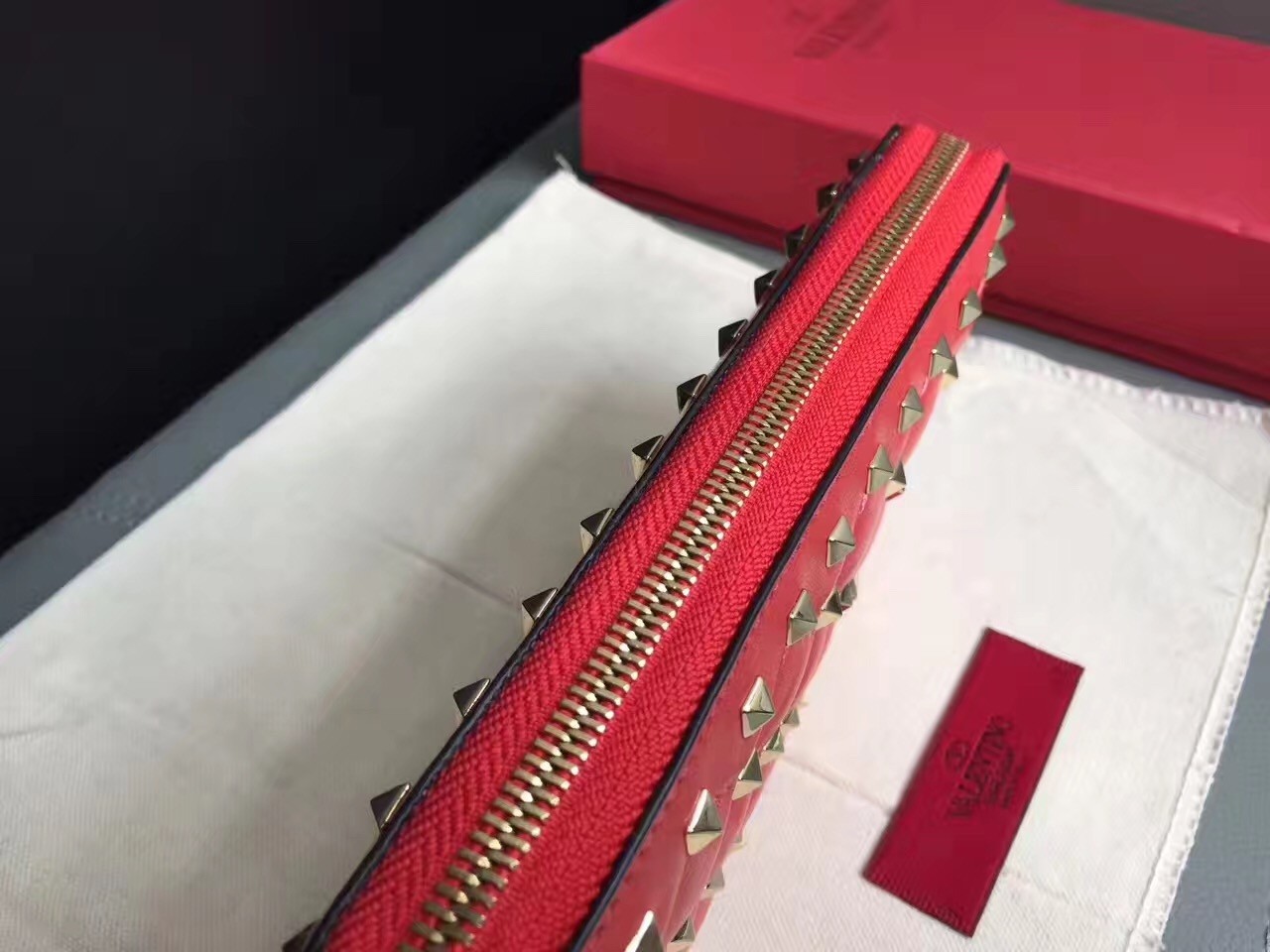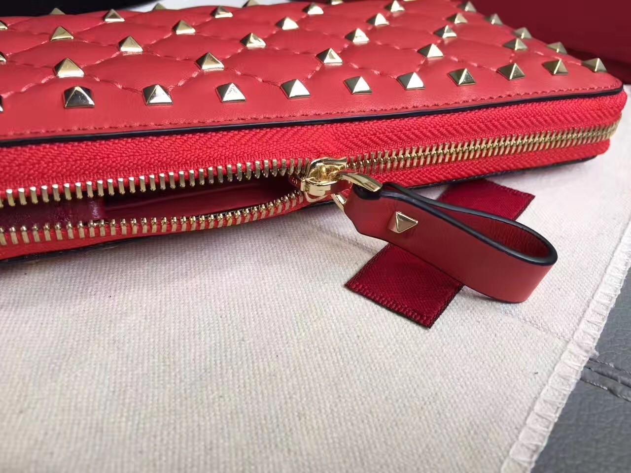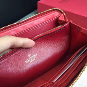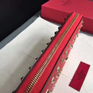Valentino Rockstud Spike Zip Wallet In Red Lambskin
