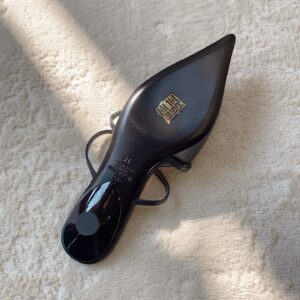 – Oval-shaped lacquered heel