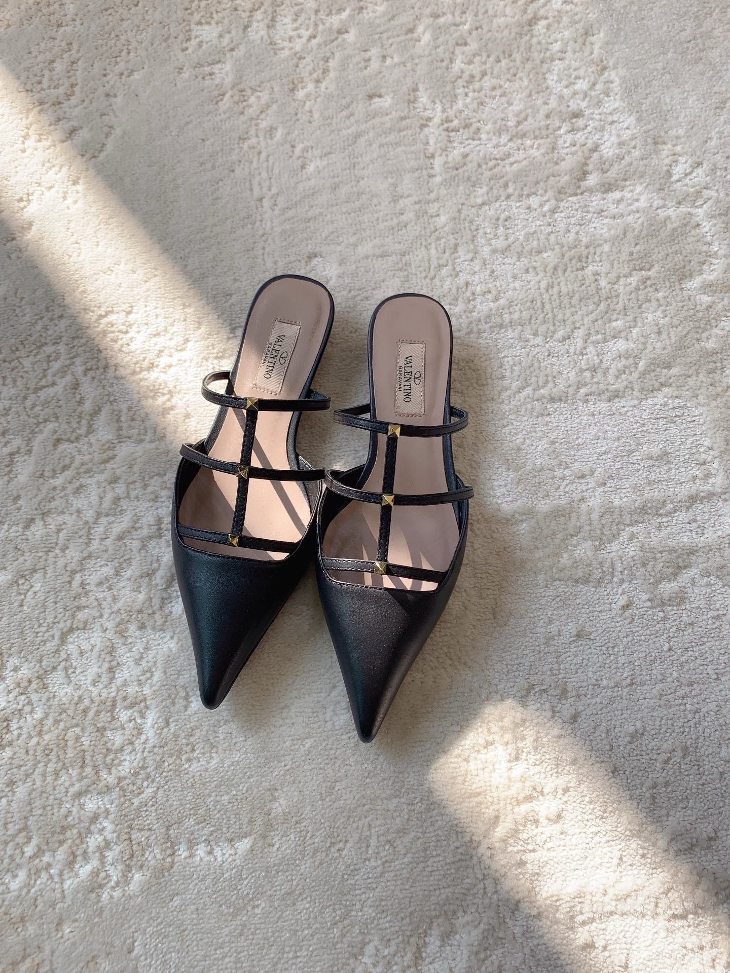 Valentino Rockstud Wispy Mules in Black Leather