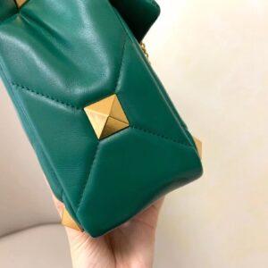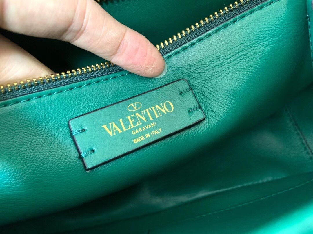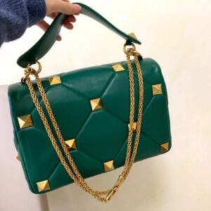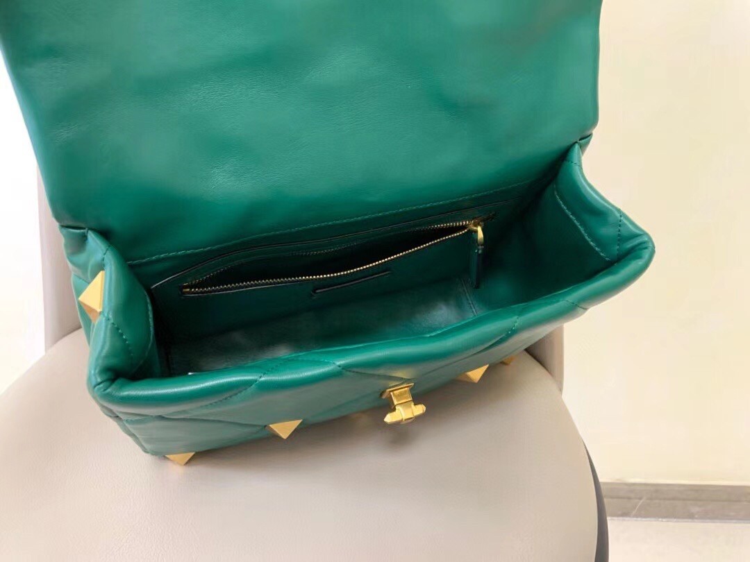 Valentino Roman Stud Chain Bag In Green Lambskin