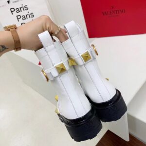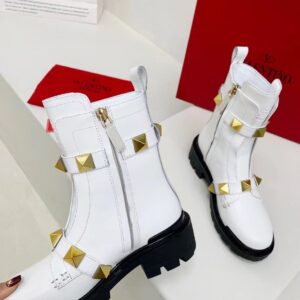 Valentino Roman Stud Combat Boots In White Calfskin