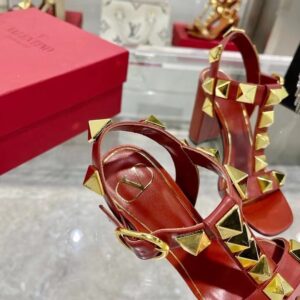 Valentino Roman Stud Sandals 90mm In Red Calfskin