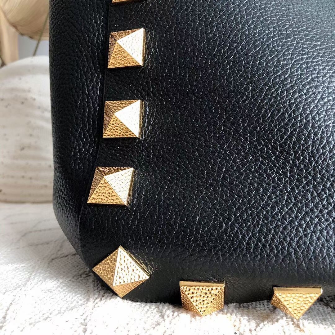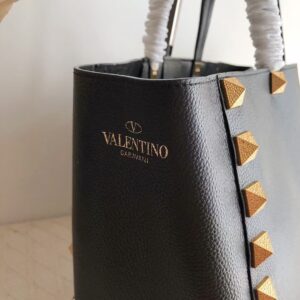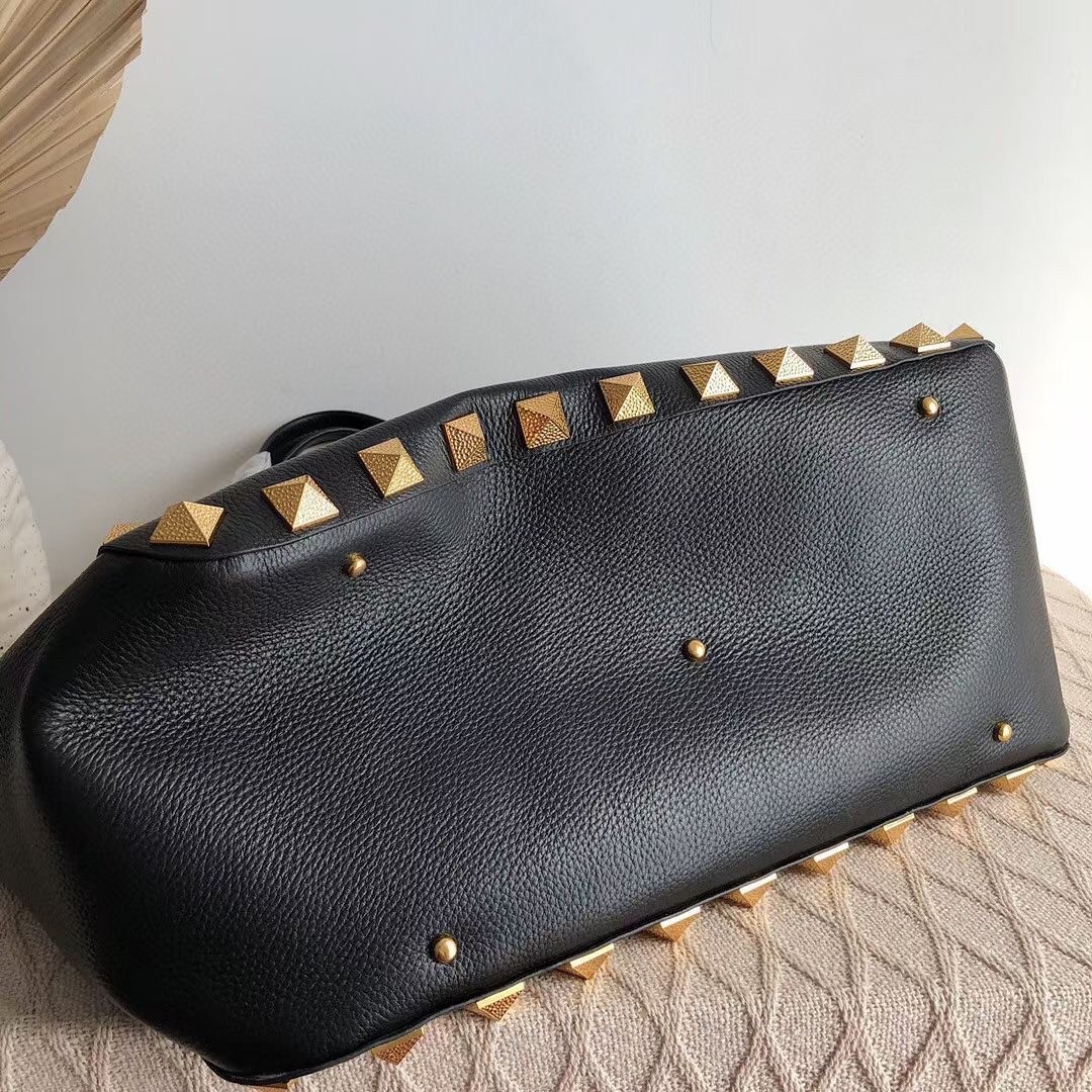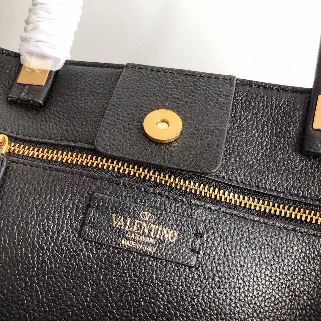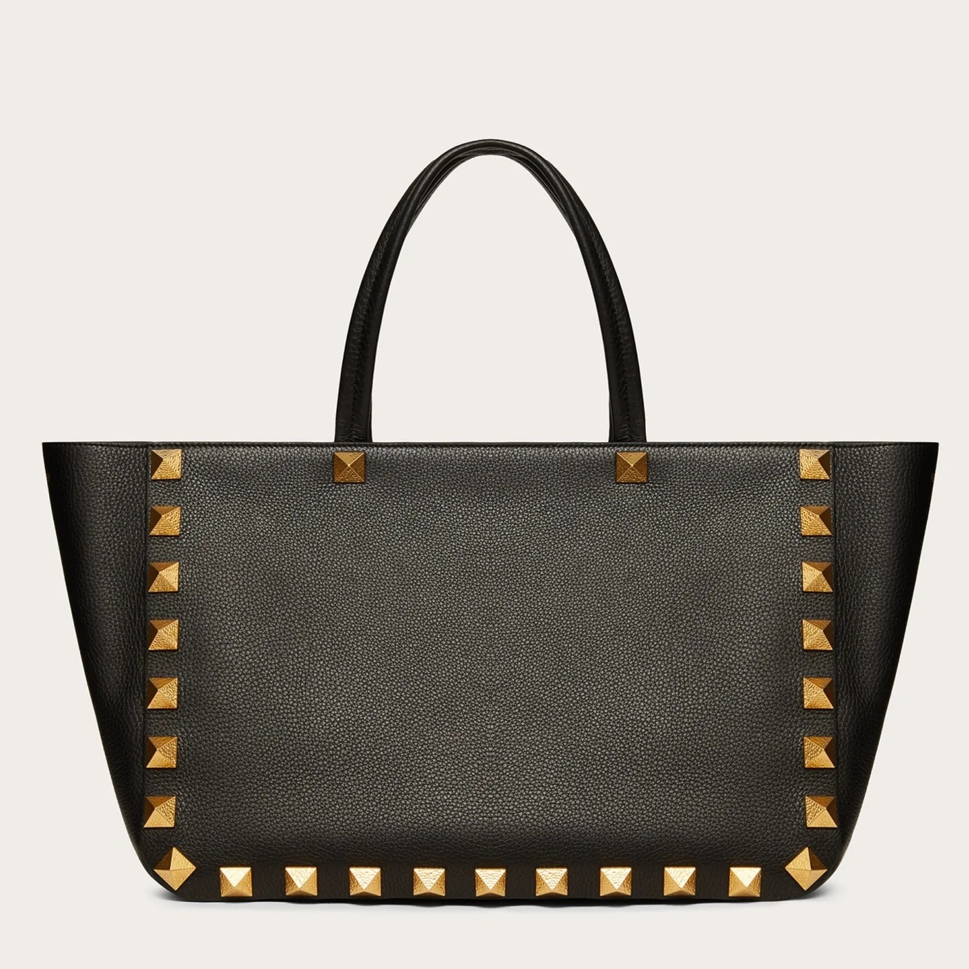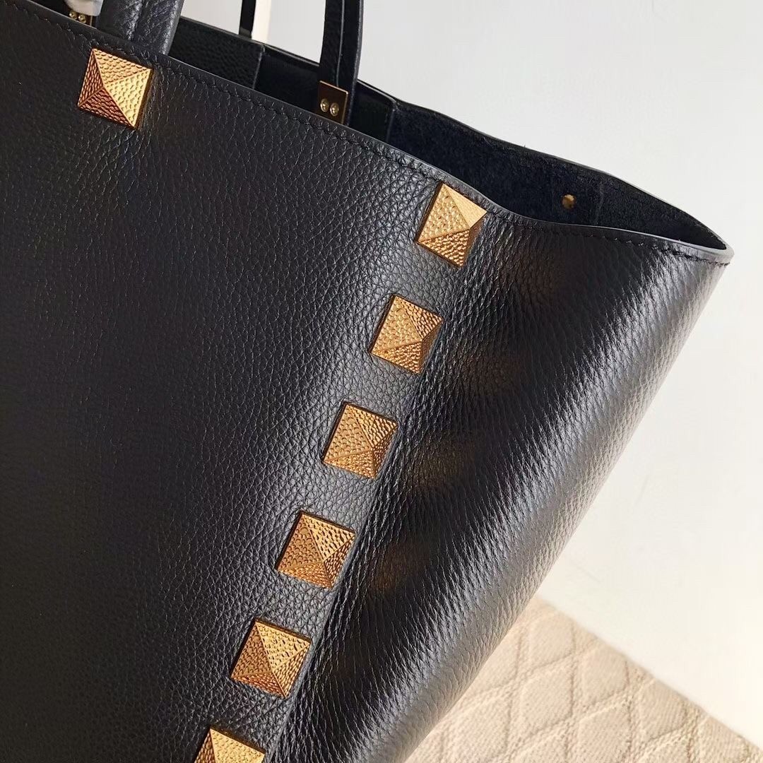 Valentino Roman Stud Tote Bag In Black Grainy Calfskin