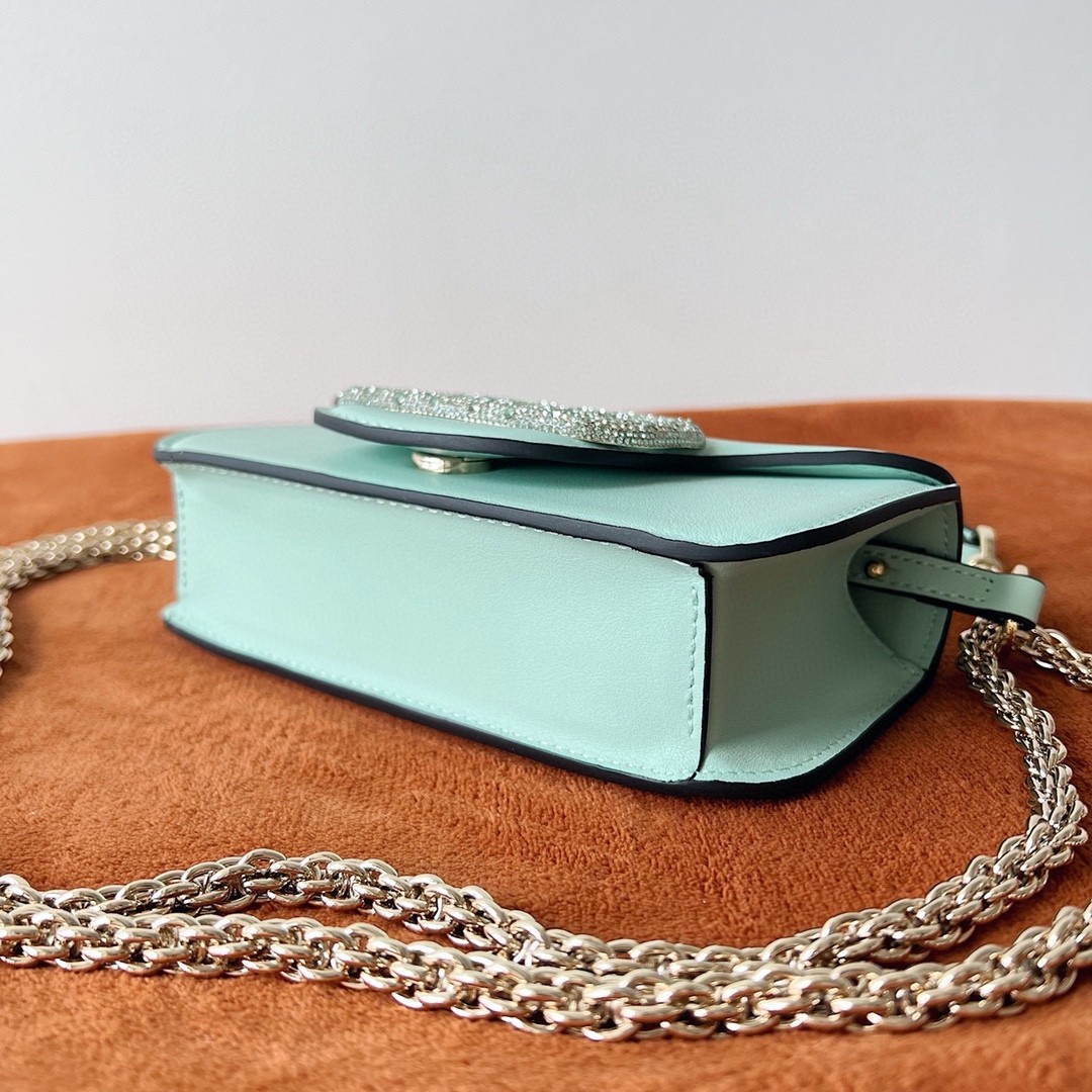 Valentino Small Loco Shoulder Light Green Bag with Crystals Logo