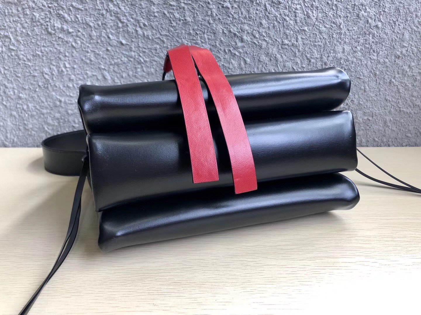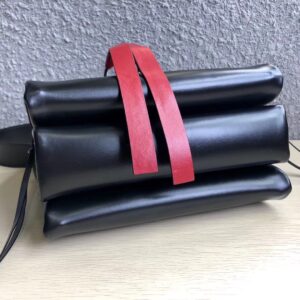 – Interior: three fold-out compartments and one red zipper pocket