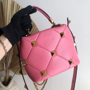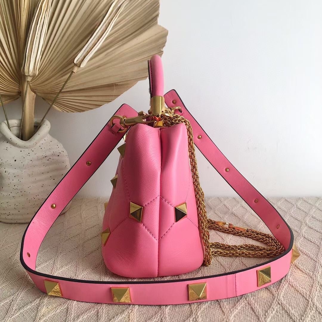 Valentino Small Roman Stud Top Handle Bag In Flamingo Nappa