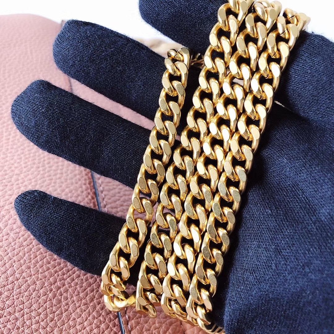– Antique brass logo and hardware