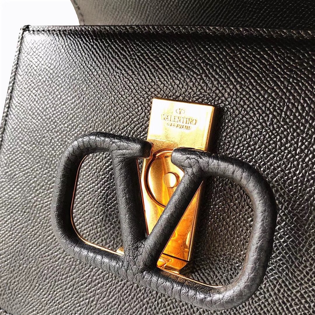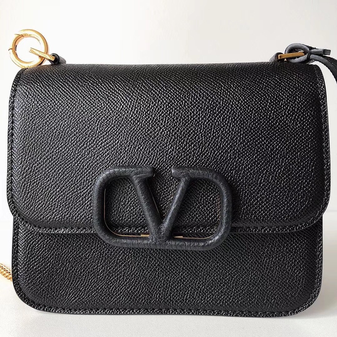 Valentino Small Vsling Shoulder Bag In Black Grainy Leather