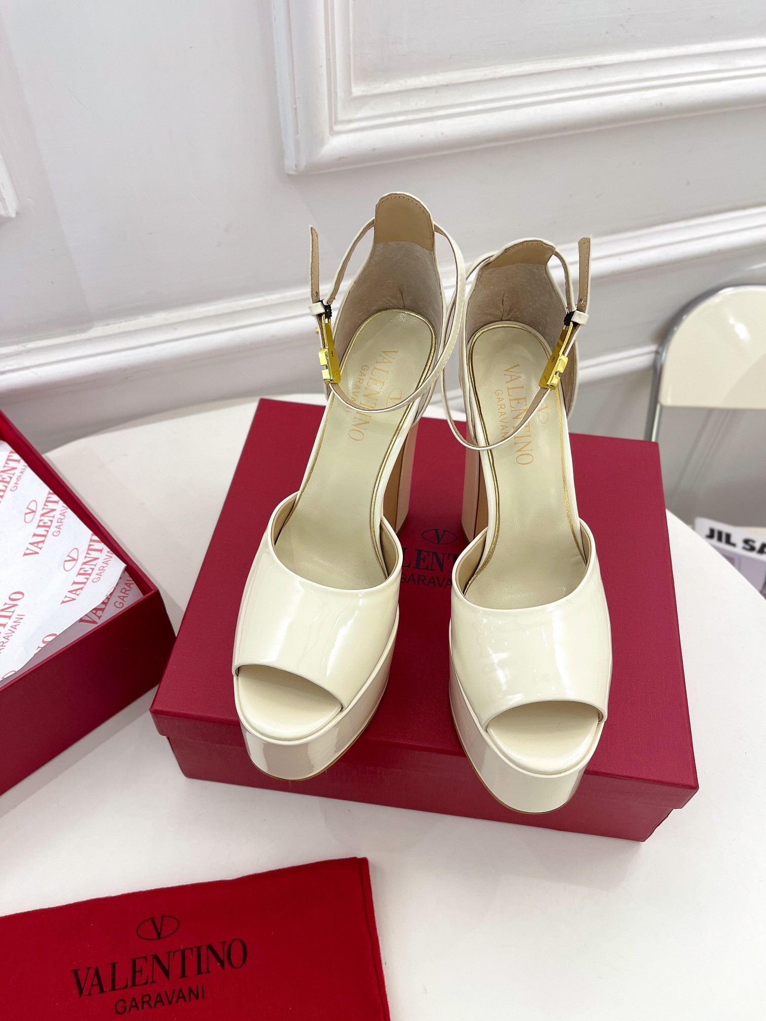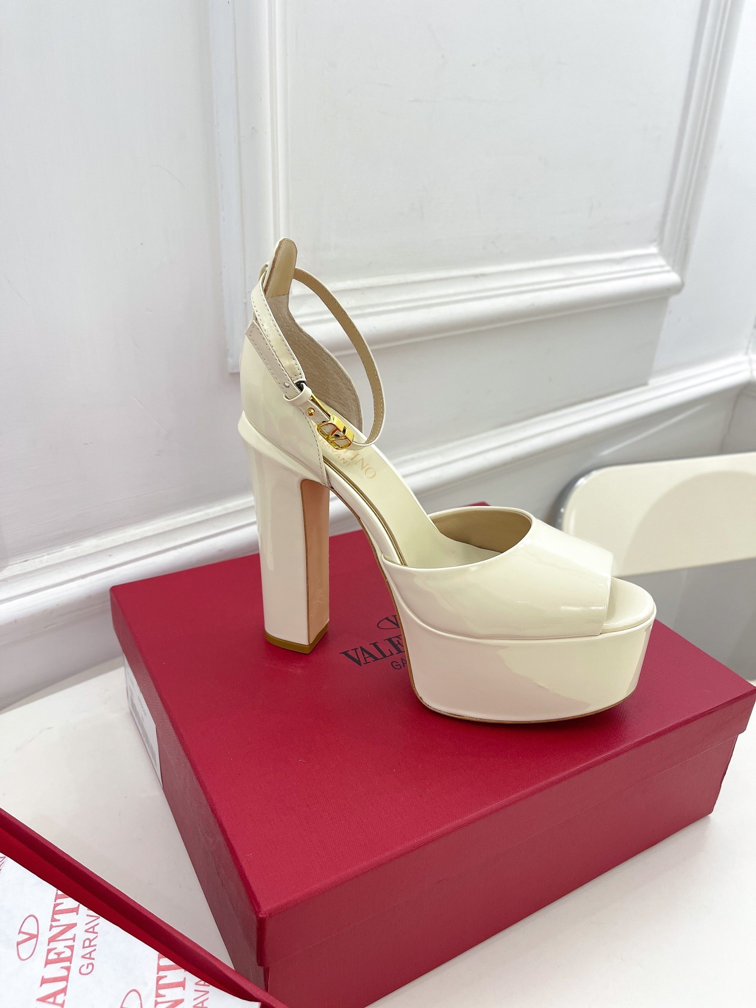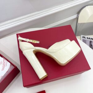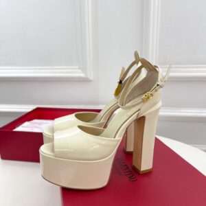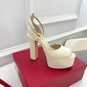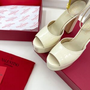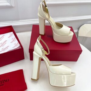 Valentino Tan-Go Platform Sandals 155mm In White Patent Leather