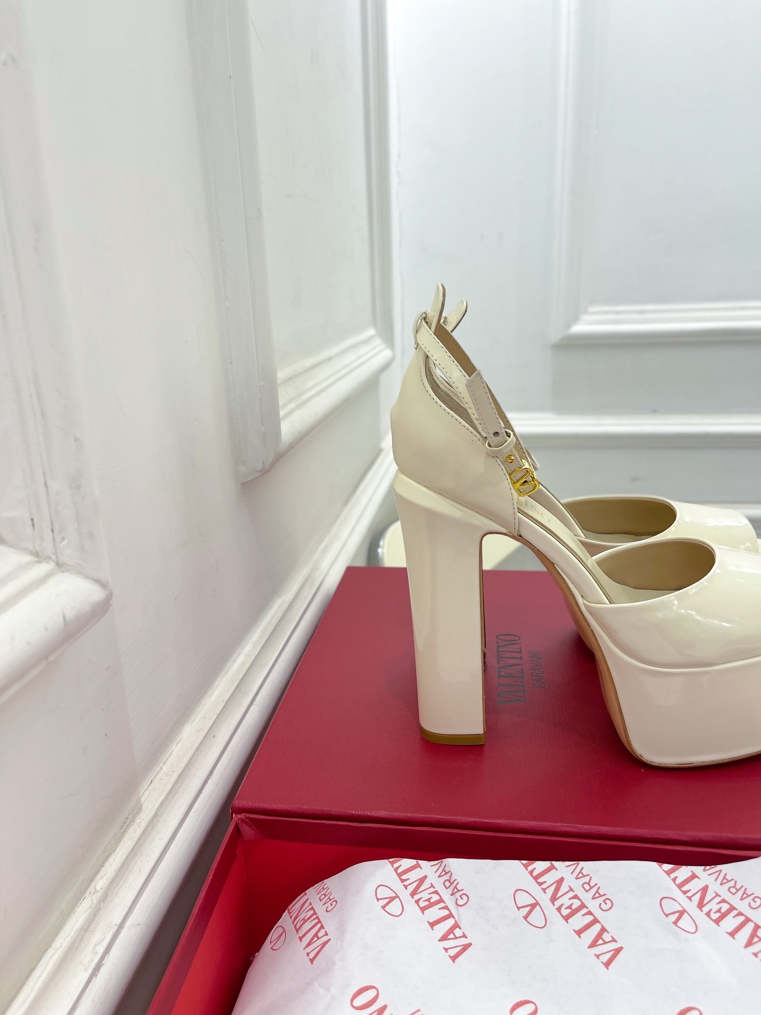 – Adjustable ankle strap with customized VLogo Signature buckle