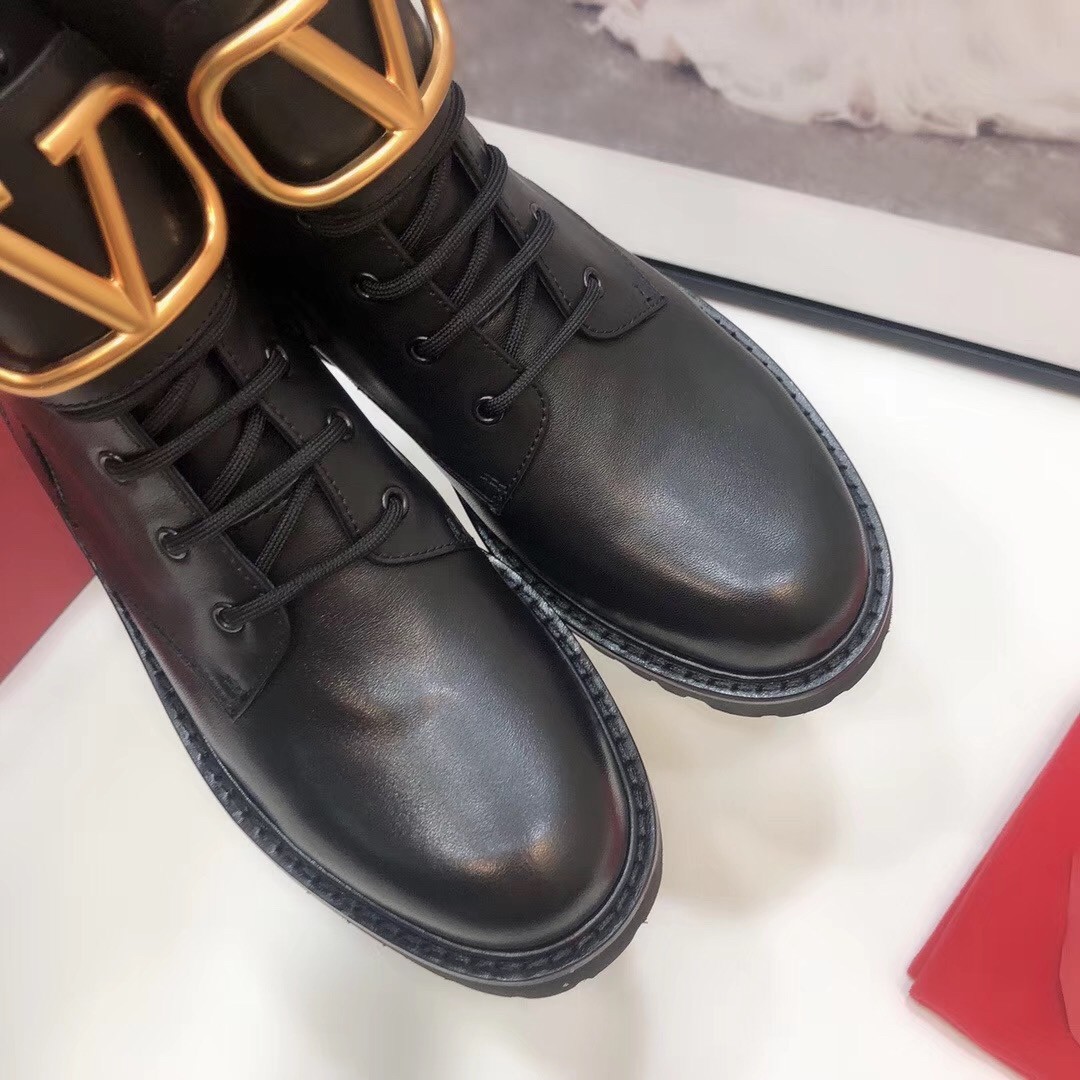 Valentino Vlogo Combat Boot 35MM In Black Calfskin