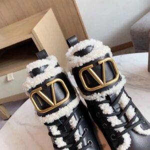 Valentino VLogo Combat Boots with Shearling Lining
