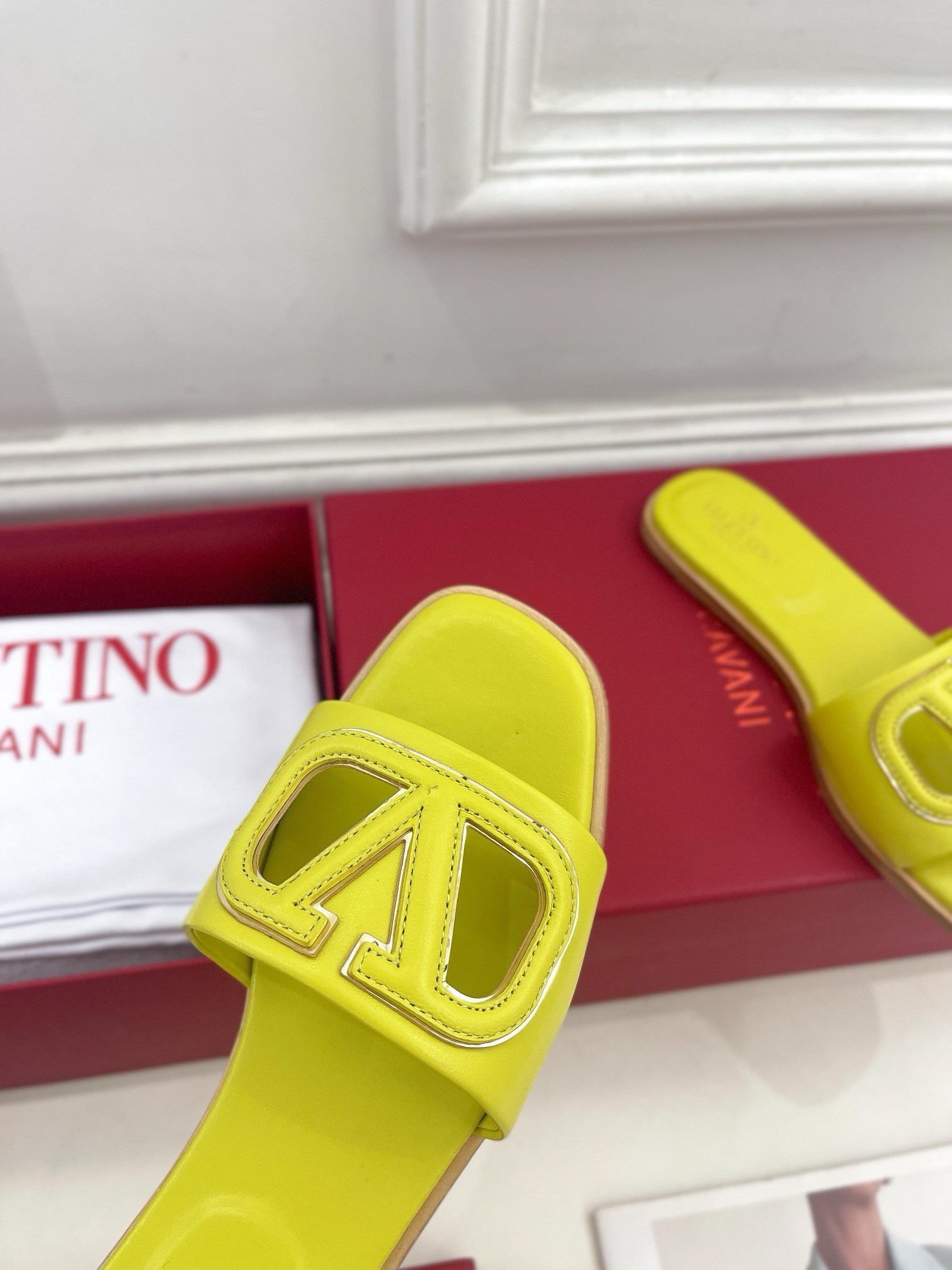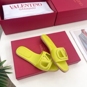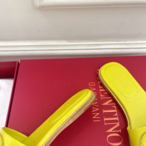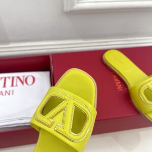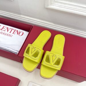Valentino VLogo Cut-out Slide Sandals in Yellow Leather
