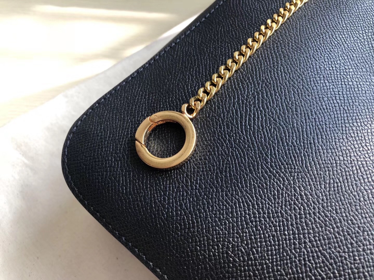 – Leather shoulder strap with adjustable chain