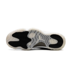 The Air Jordan 11 “Gratitude” is the modern re-release of the colorway of Michael Jordan’s eleventh signature shoe that originally released as part of the “Defining Moments Pack” from 2006. Also nicknamed the “DMP 2023” colorway, this Jordan 11 is based on the retro basketball sneaker’s original “Concord” colorway that was worn by Jordan with the Chicago Bulls throughout the team’s historic run during the 1995-96 NBA season. The upper features a white leather construction, instead of the original DMP colorway’s ballistic mesh build. A glossy black patent leather mudguard contrasts the shoe’s neutral base. Metallic Gold Jumpman branding is found on the collar while “Jumpman” detailing appears across the white mesh tongue. Underfoot, the white foam midsole and translucent rubber outsole complete the look. Release date:December 9, 2023