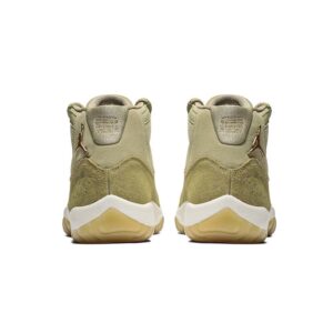 The Women’s Air Jordan 12 “Olive Lux” is a women’s exclusive colorway of the iconic silhouette. Released during the holiday 2018 season, the “Olive Lux” or “Neutral Olive” colorway offers an impeccable look for the Air Jordan 11. It features an olive suede upper, and the shoe’s traditional patent leather mudguard is replaced by a suede that has a metallic marbled treatment for a thoroughly unique look. Other luxurious details are present, including metal Jumpman logos, metallic branding on the heels and tongue, and a golden lace dubrae on both laces. The Jordan 11 is finished with a semi-translucent olive rubber outsole. With its premium look, the Women’s Air Jordan 12 “Olive Lux” is a must-have for female Air Jordan fans.