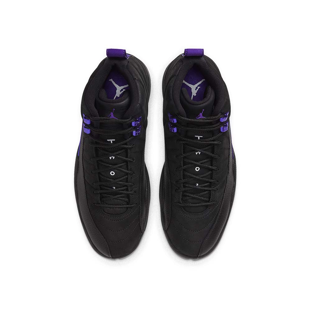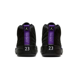 The Air Jordan 12 Retro ‘Dark Concord’ showcases classic color blocking modeled after the silhouette’s iconic ‘Flu Game’ colorway. This pair replaces the older shoe’s Varsity Red accents with a bold violet finish on the sneaker’s signature tall mudguard and rubber outsole. The rest of the upper is constructed from stitched black suede, accented with metallic silver eyelets and embroidered Jumpman branding atop the tongue.