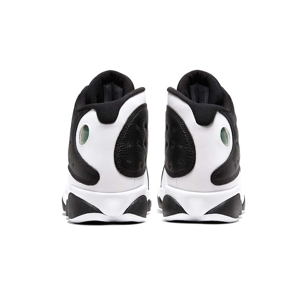 As its moniker suggests, the Air Jordan 13 Retro ‘Reverse He Got Game’ offers a flip on the OG colorway of the sneaker nominally associated with Spike Lee’s 1998 film. Basic black is applied to the mid-tops tumbled leather toe and side panels, contrasted by a crisp white finish on the rest of the upper. Breaking up the two-tone palette is a green holographic ‘cat-eye’ and a red Jumpman logo on the tongue.