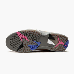 The Air Jordan 7 “Sapphire” is an April 2022 release of Michael Jordan’s retro basketball shoe in a colorway that honors its 30th anniversary by remixing its classic design. The Jordan 7 was originally released with an all-leather upper back in 1991, and subsequent releases of the shoe have mostly had leather uppers, as well, save for this futuristic “Sapphire” colorway. Here, the design incorporates mesh panels on the mid-panel and ankle above an orange and purple underlay. Tan leather is found on the rest of the shoe’s upper. A speckled grey midsole and smoky translucent outsole complete the look. Release date: April 16, 2022