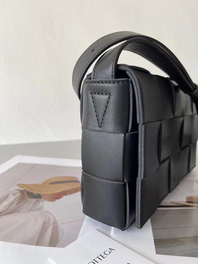 Bottega Veneta Cassett Bag In Black Intrecciato Lambskin