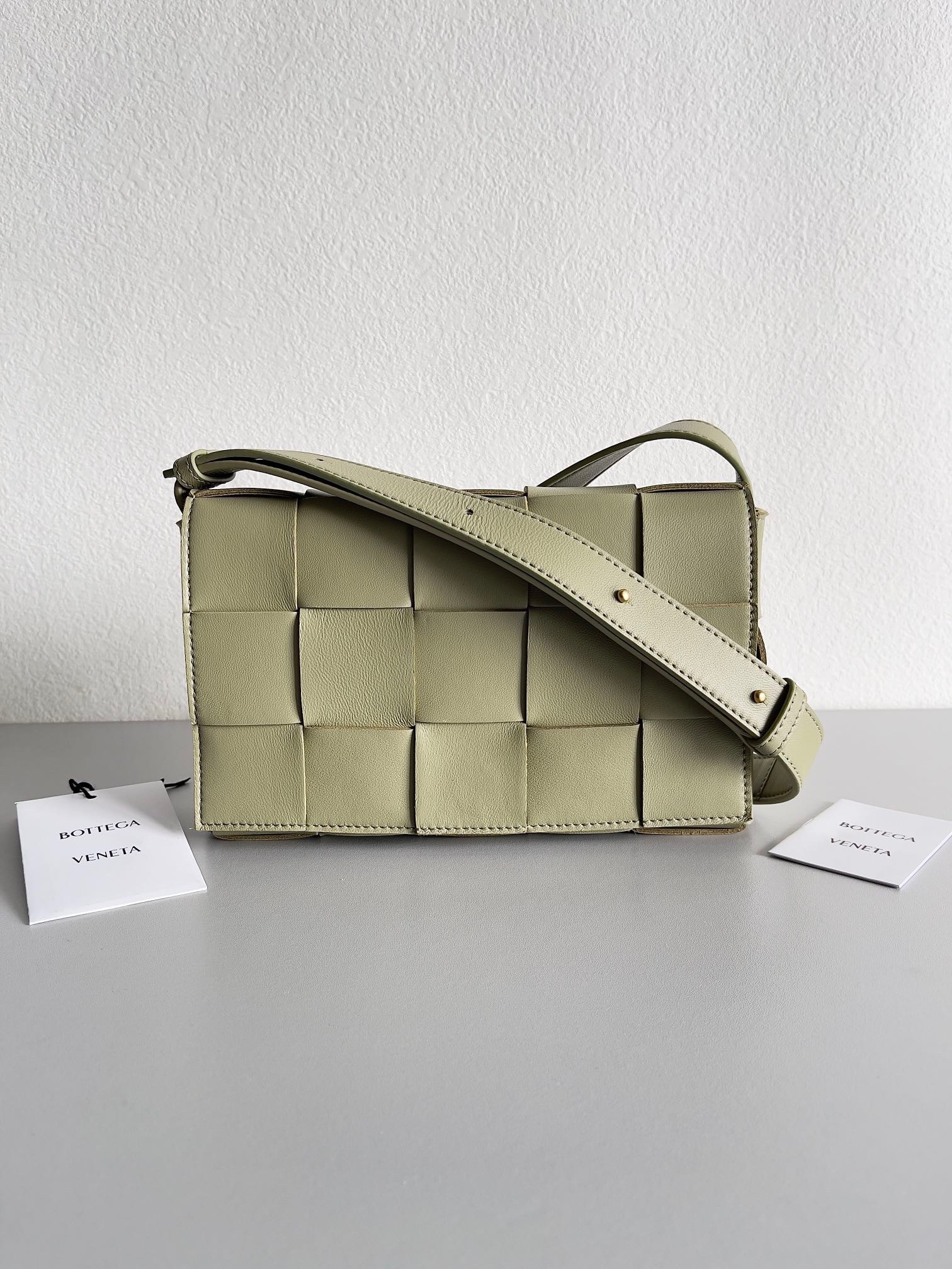 Bottega Veneta Cassett Bag In Travertine Intrecciato Lambskin