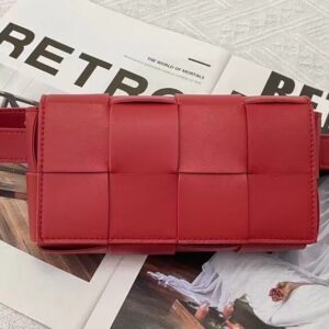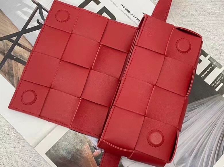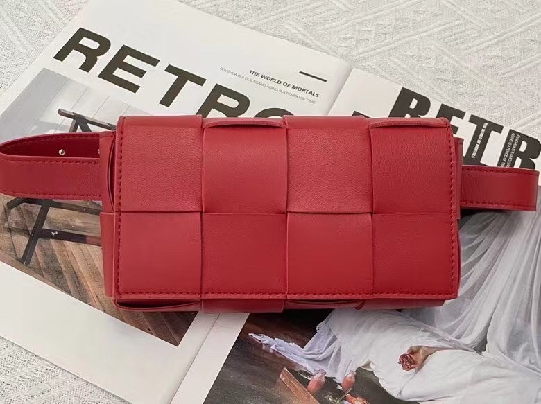 Bottega Veneta Cassette Belt Bag In Red Intrecciato Leather