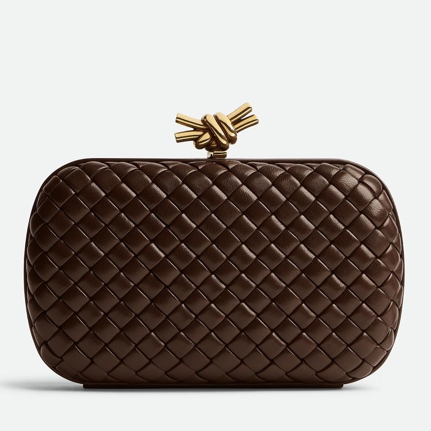 Bottega Veneta Knot Minaudiere Clutch In Bordeaux Intrecciato Lambskin
