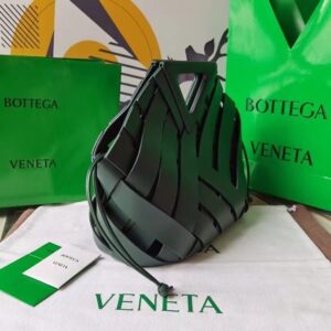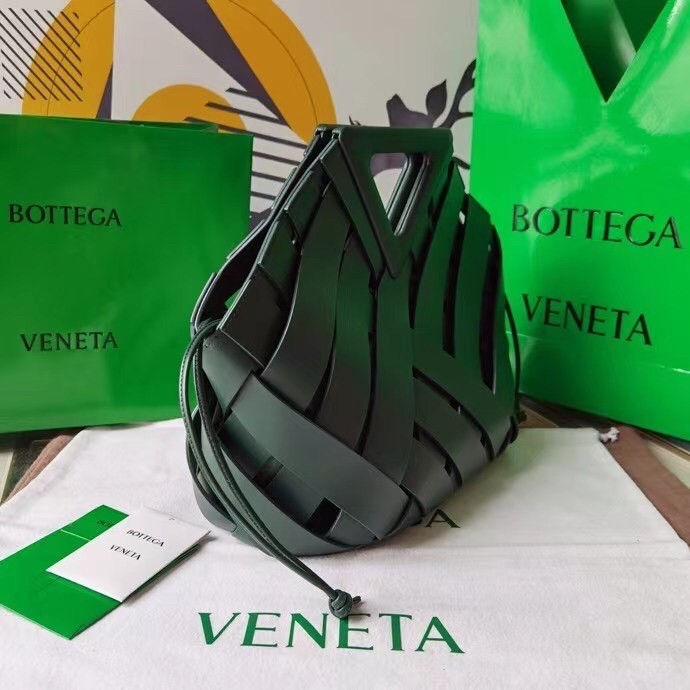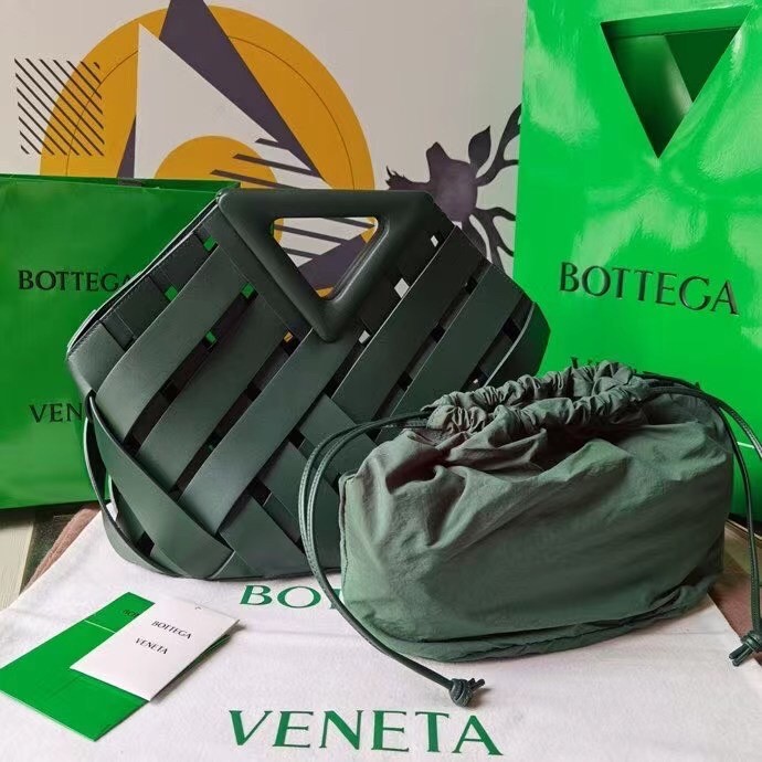 Bottega Veneta Medium Point Bag In Green Intrecciato Leather