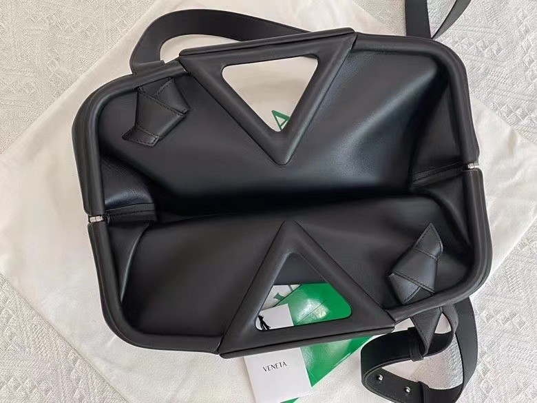 Bottega Veneta Medium Point Top Handle Bag In Black Leather