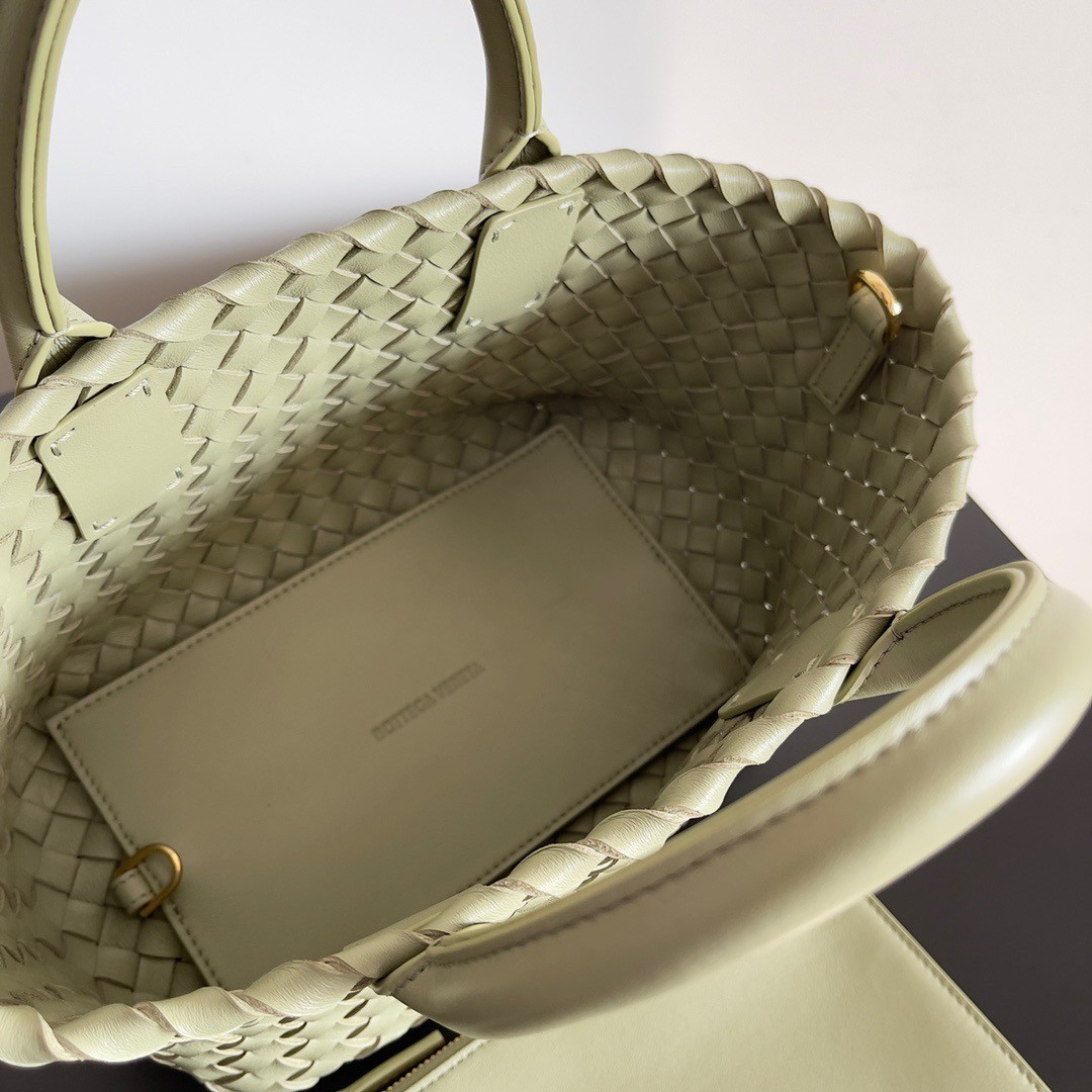 Bottega Veneta Mini Cabat Bag In Travertine Intrecciato Lambskin