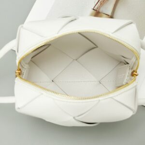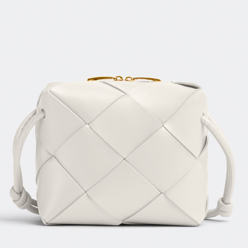 Bottega Veneta Mini Cassette Camera Bag In White Lambskin