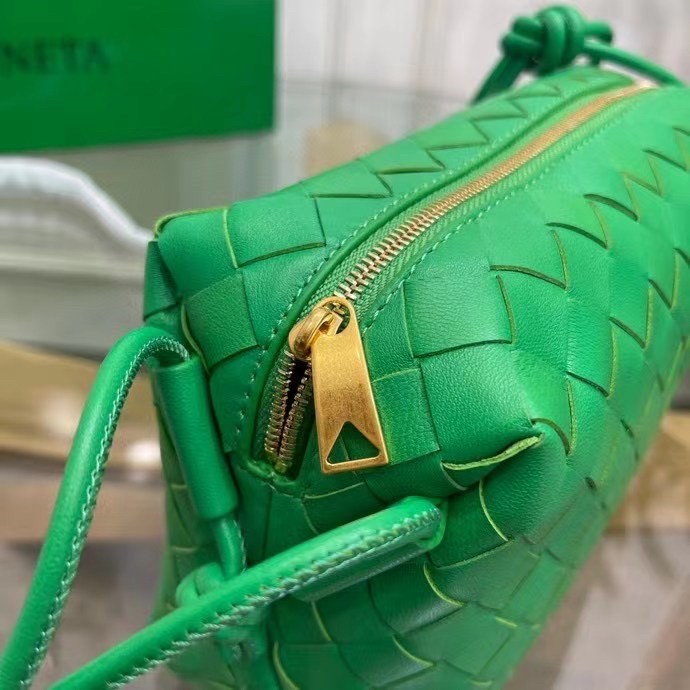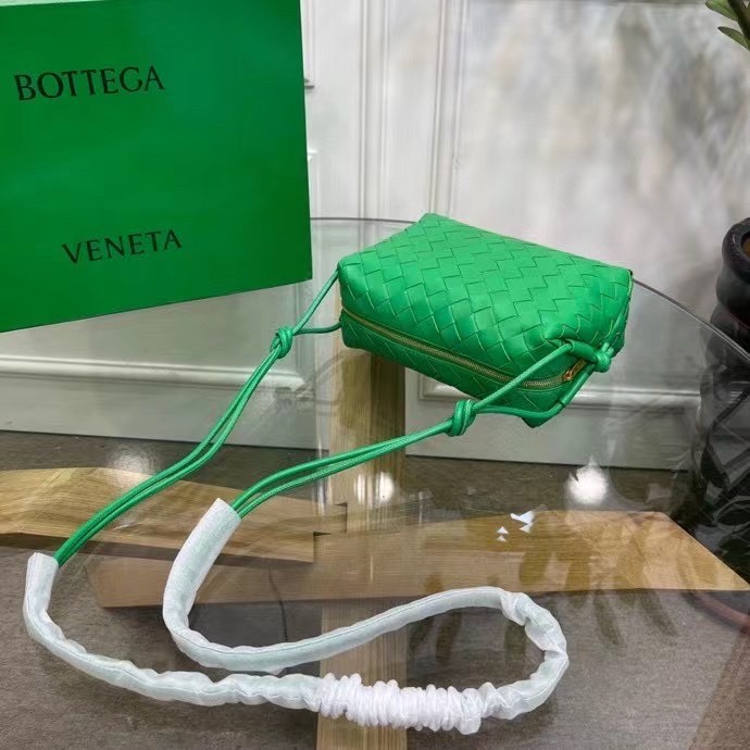 Bottega Veneta Mini Loop Bag In Green Intrecciato Lambskin