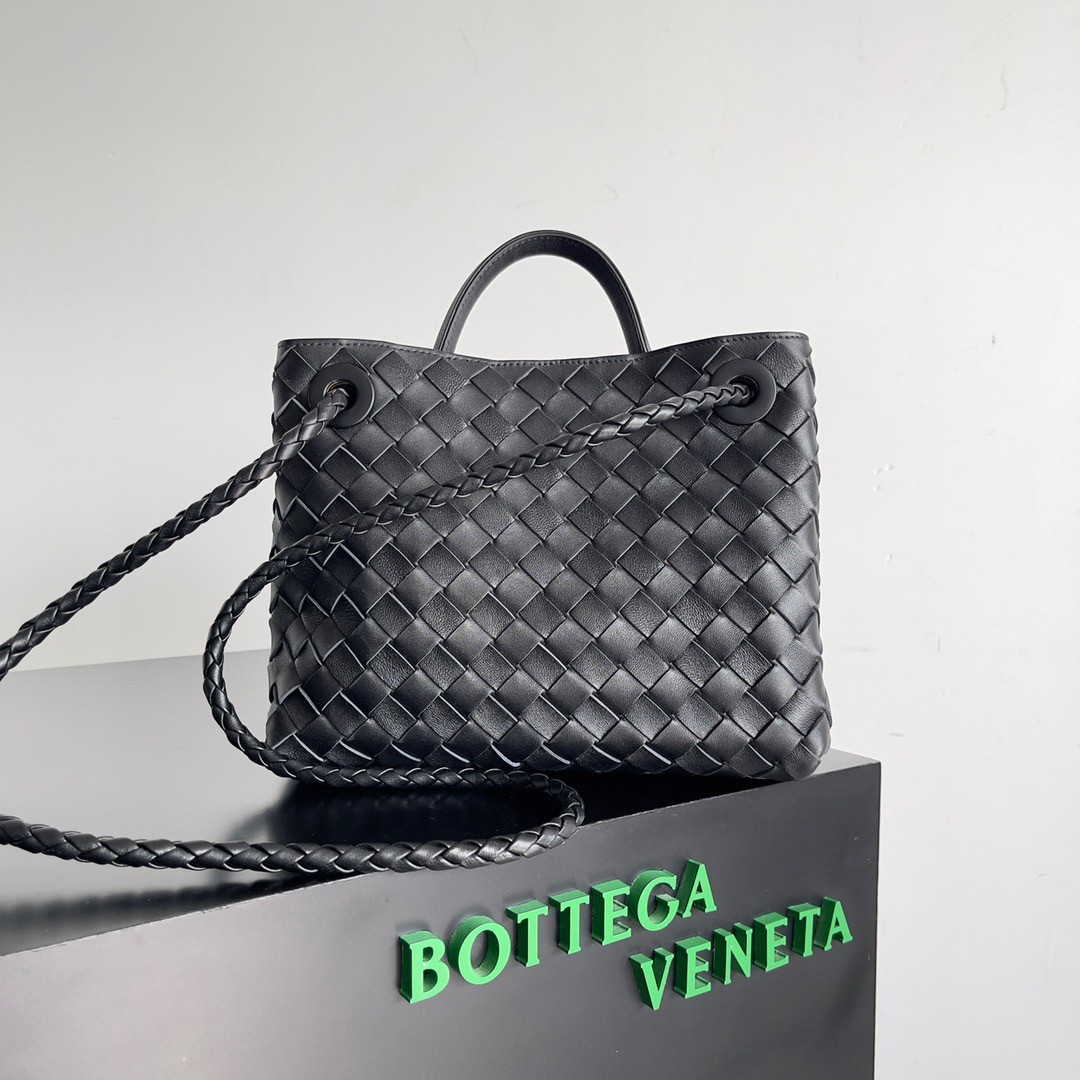 Bottega Veneta Small Andiamo Bag In Black Intrecciato Lambskin