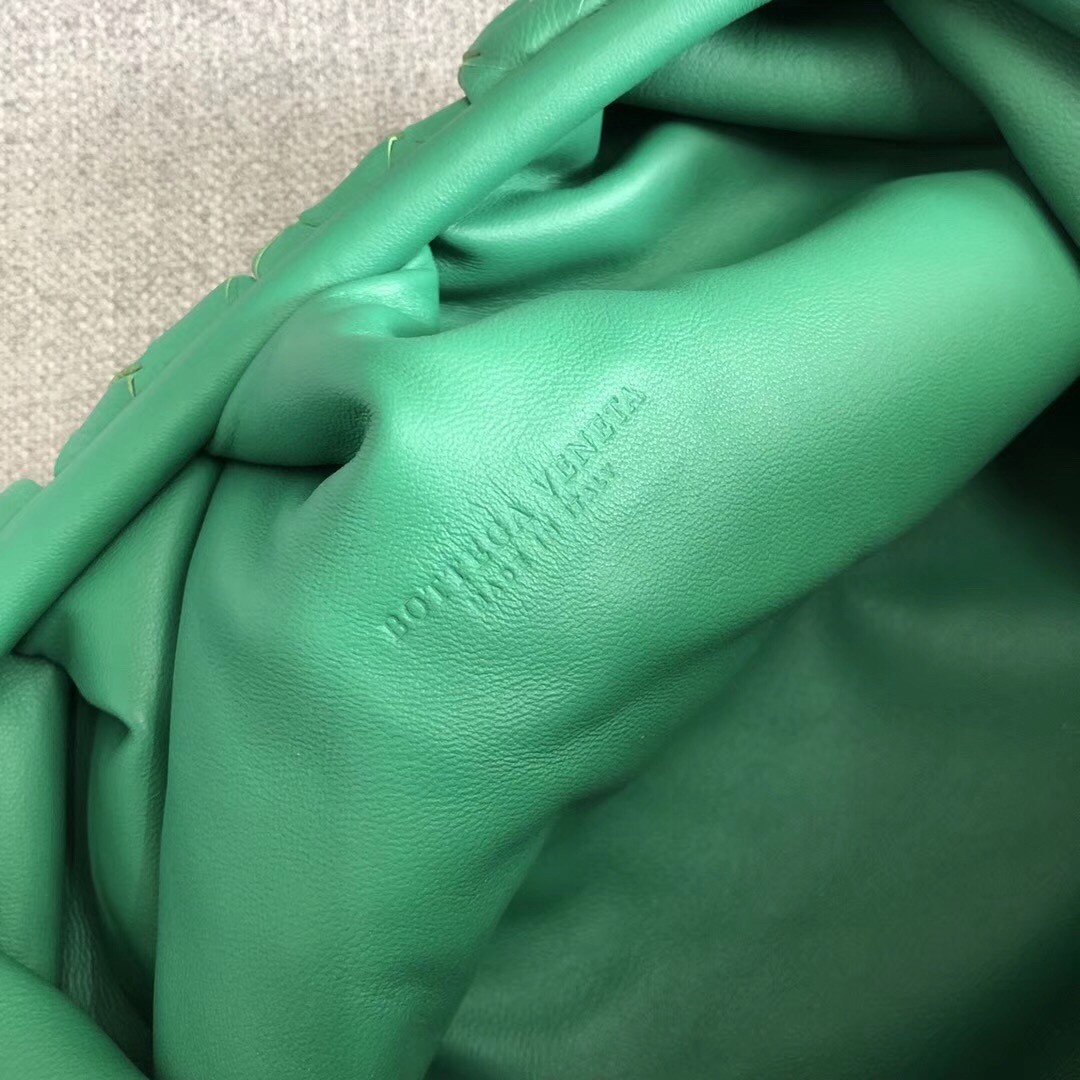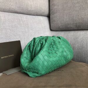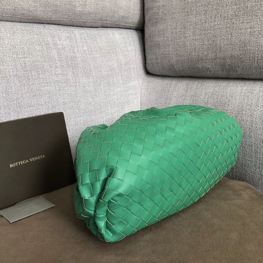 Bottega Veneta The Pouch Clutch In Green Intrecciato Leather