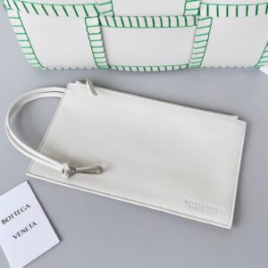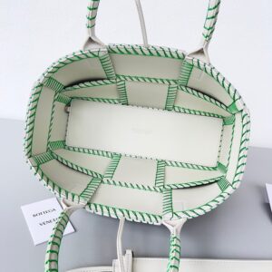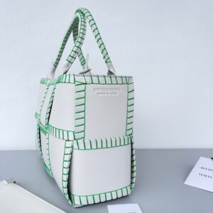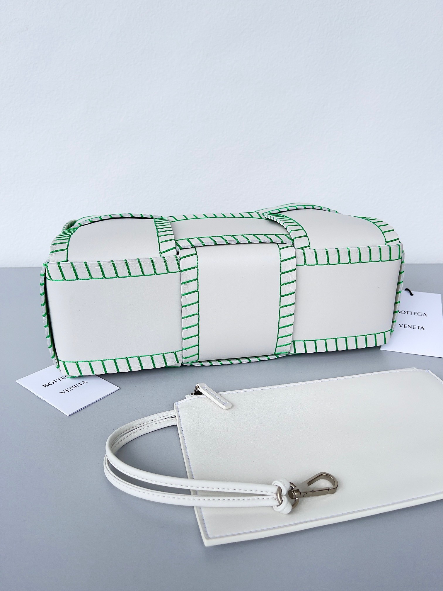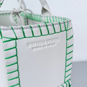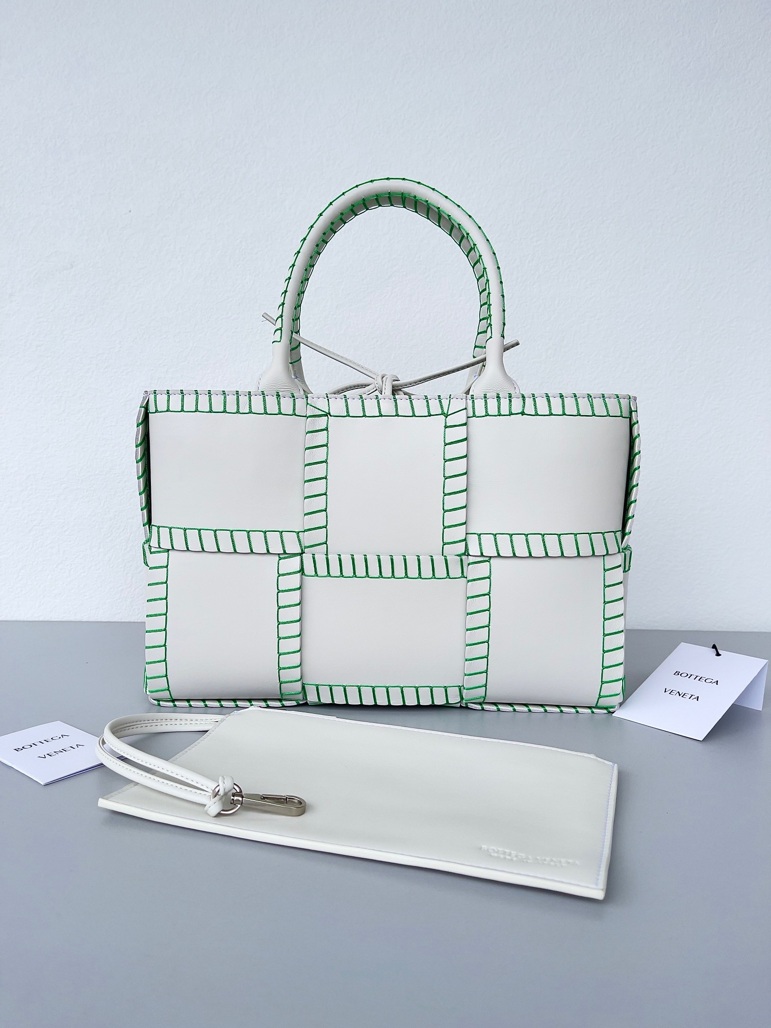 Bottega Veneta White Arco Small Tote with Green Overlock Stitching