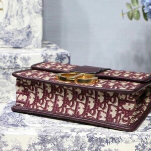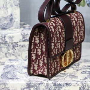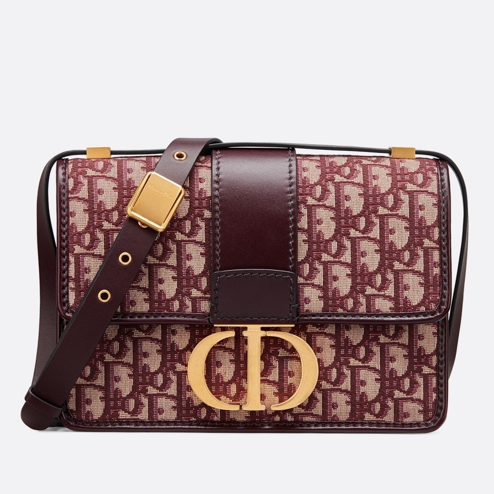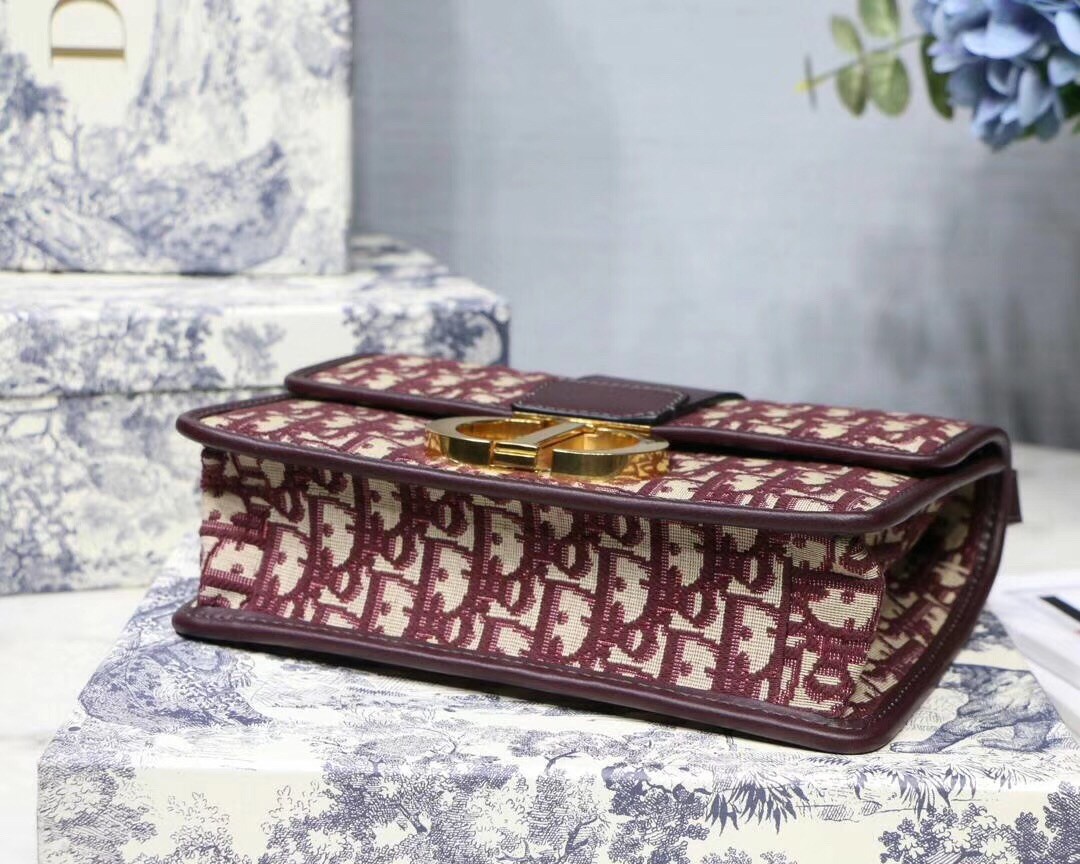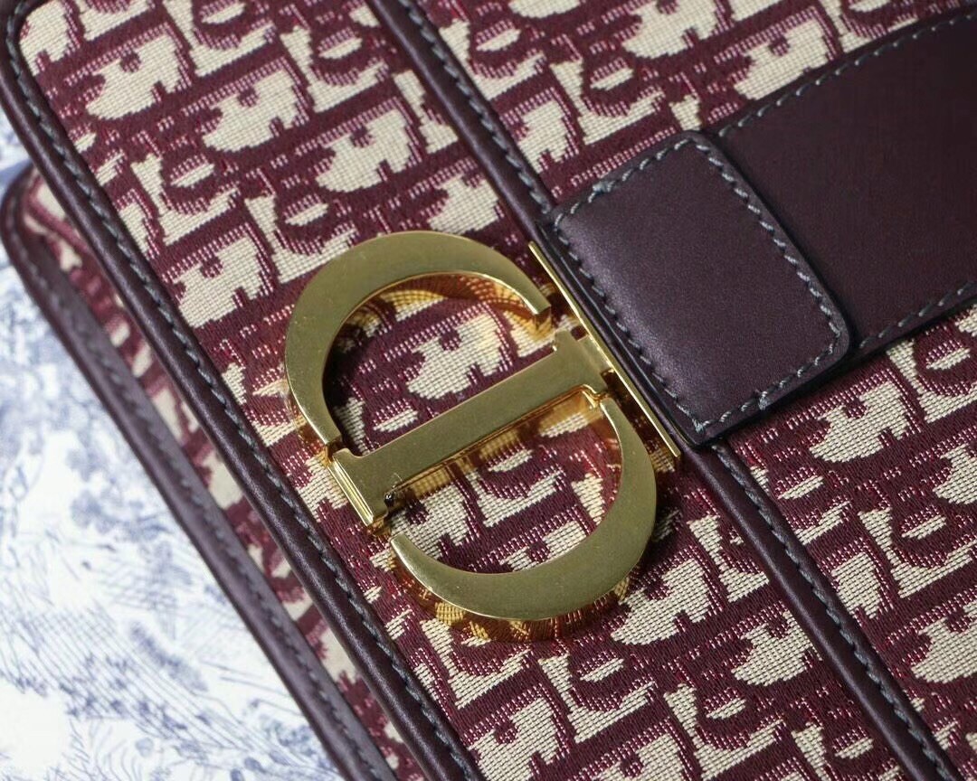 Dior 30 Montaigne Bag In Burgundy Oblique Jacquard Canvas