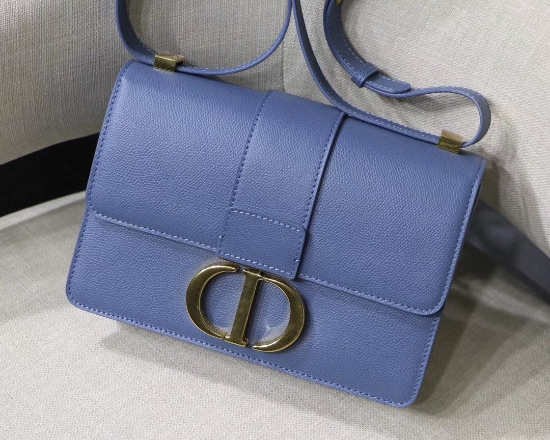 Dior 30 Montaigne Bag In Denim Blue Grained Calfskin