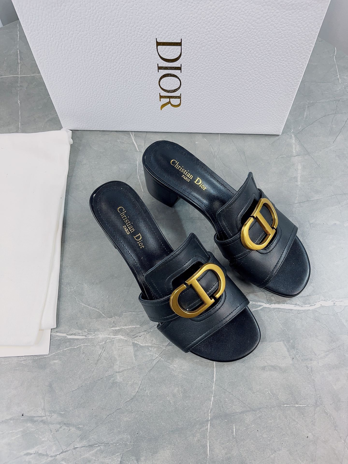 – Gold-finish metal ‘CD’ signature