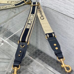 Dior Adjustable Shoulder Strap with Ring in Blue Embroidery Canvas