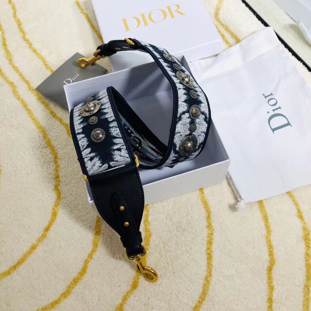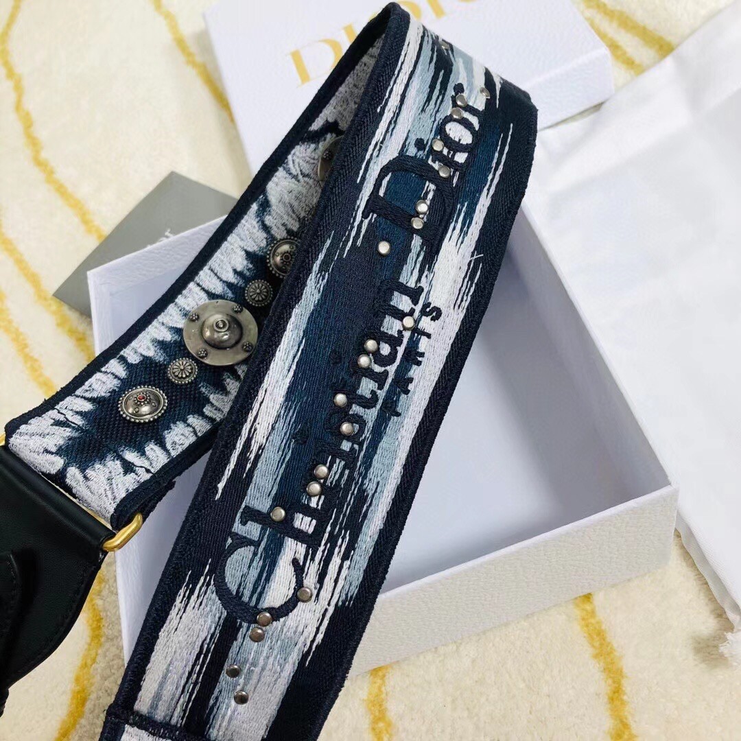 – Blue and white Tie & Dior embroidery with black calfskin