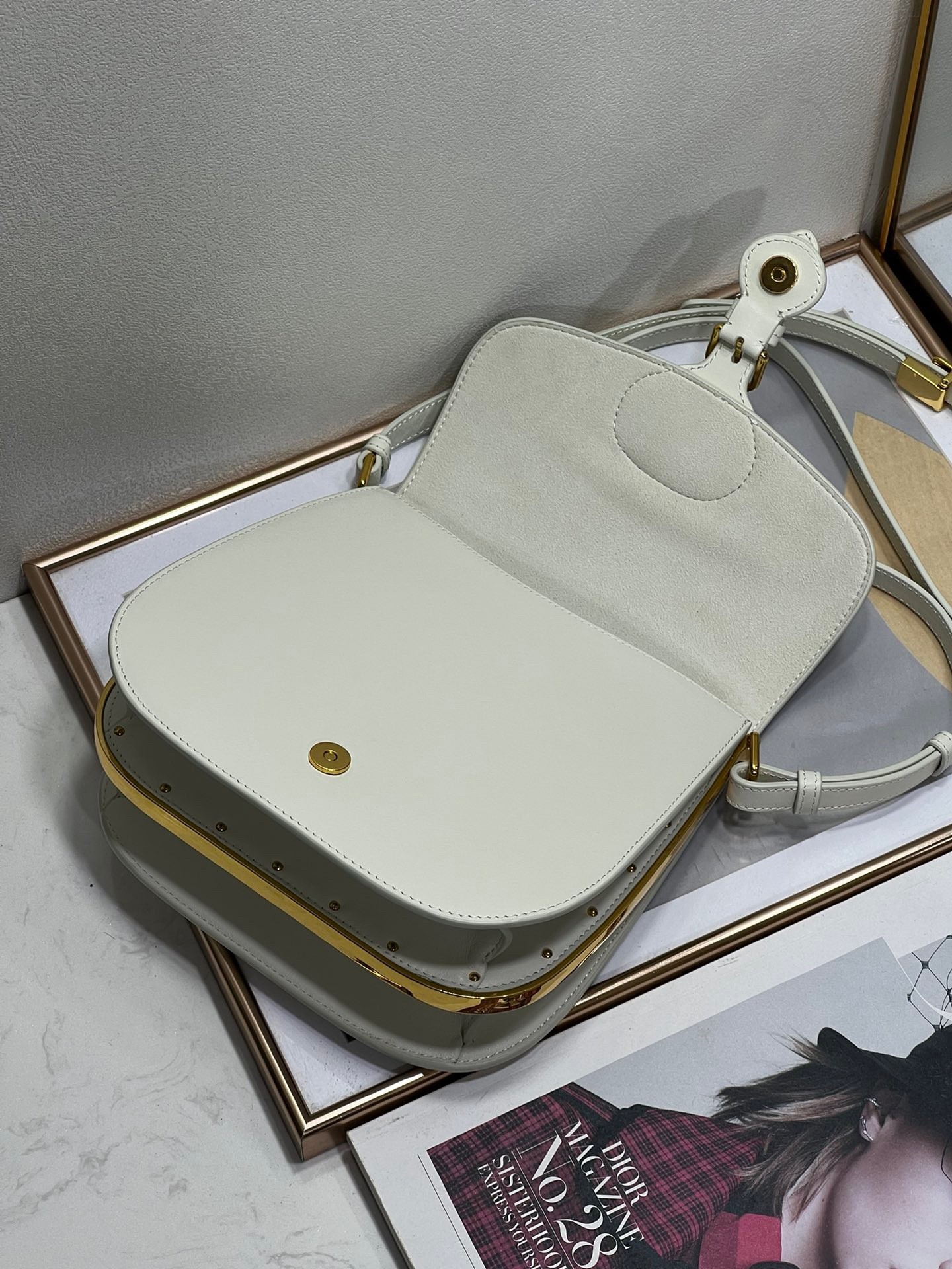 Dior Bobby Frame Bag In White Box Calfskin