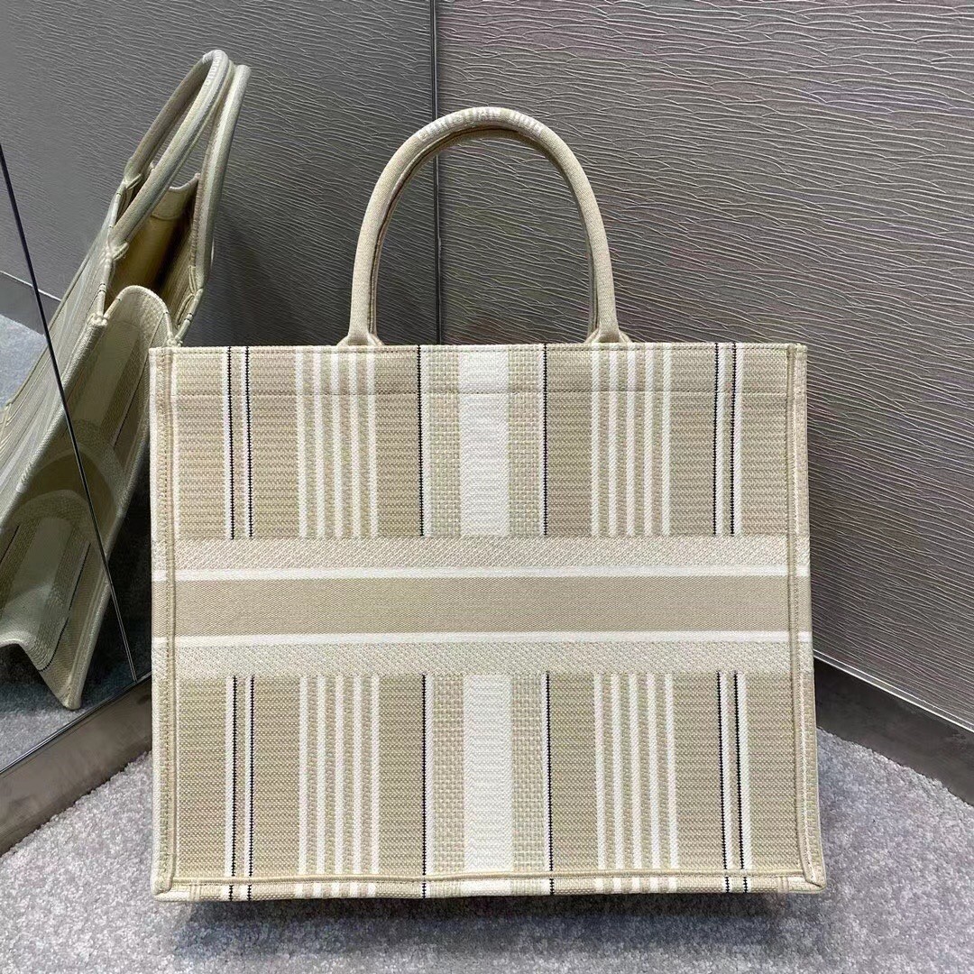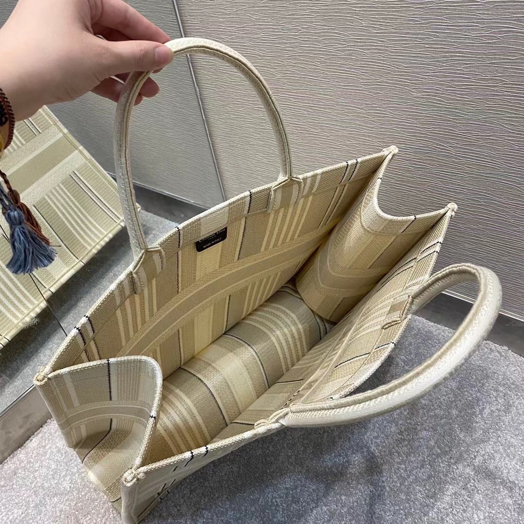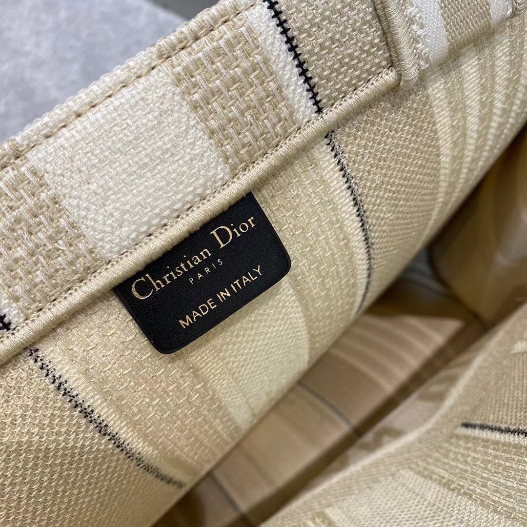 Dior Book Tote Bag In Beige Stripes Embroidery