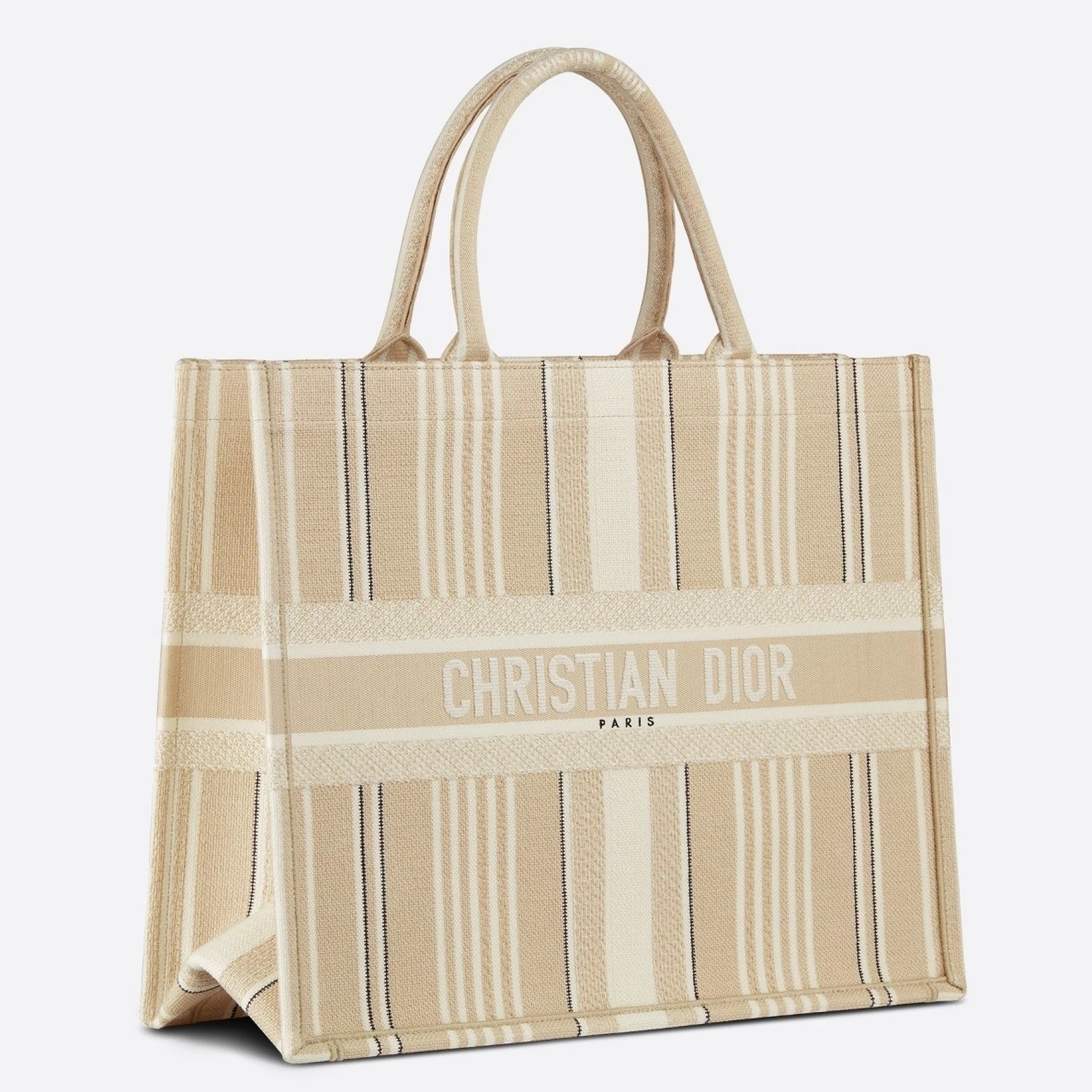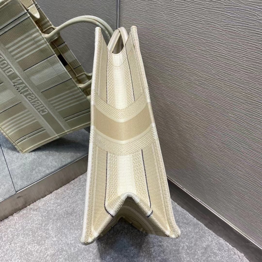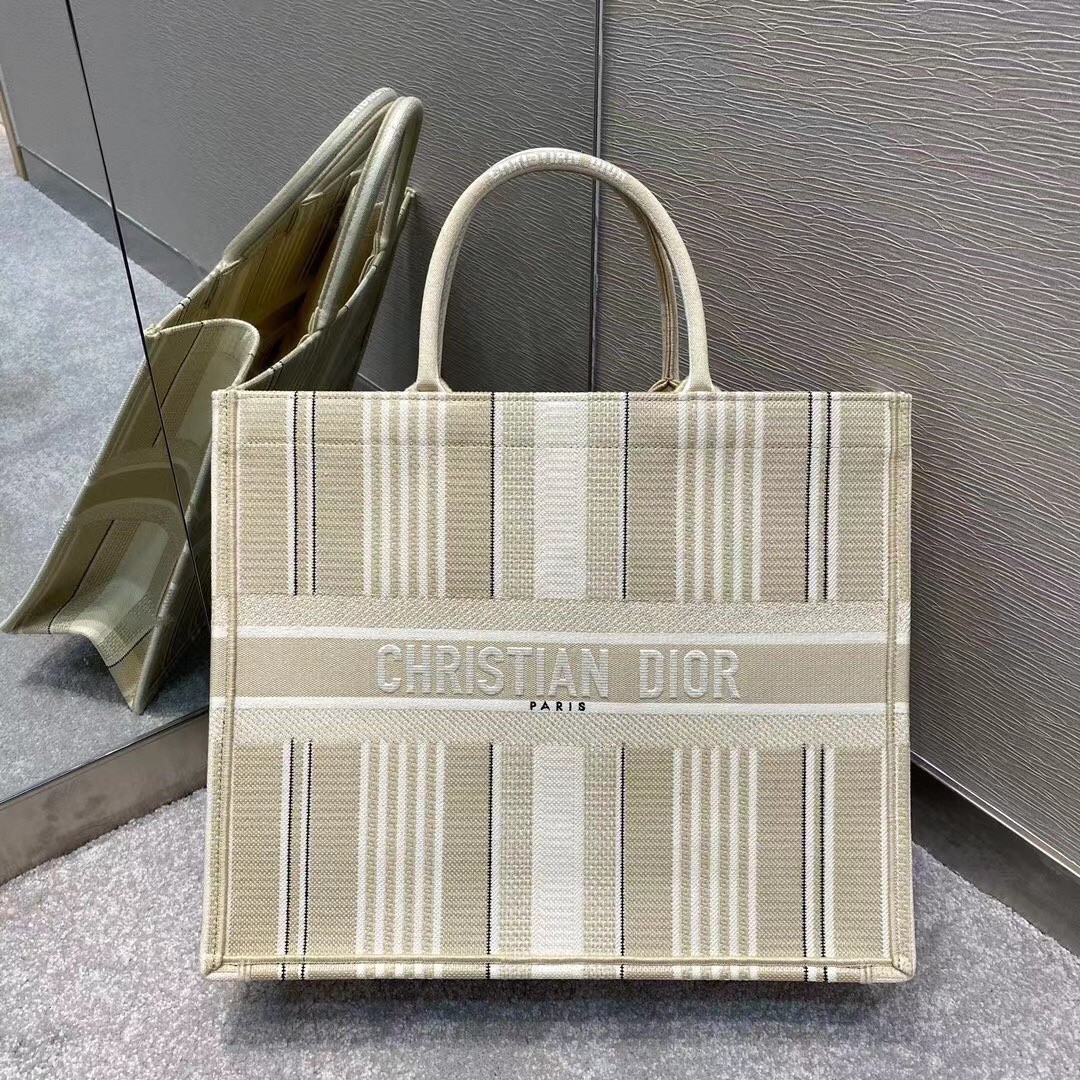 Dior Book Tote Bag In Beige Stripes Embroidery