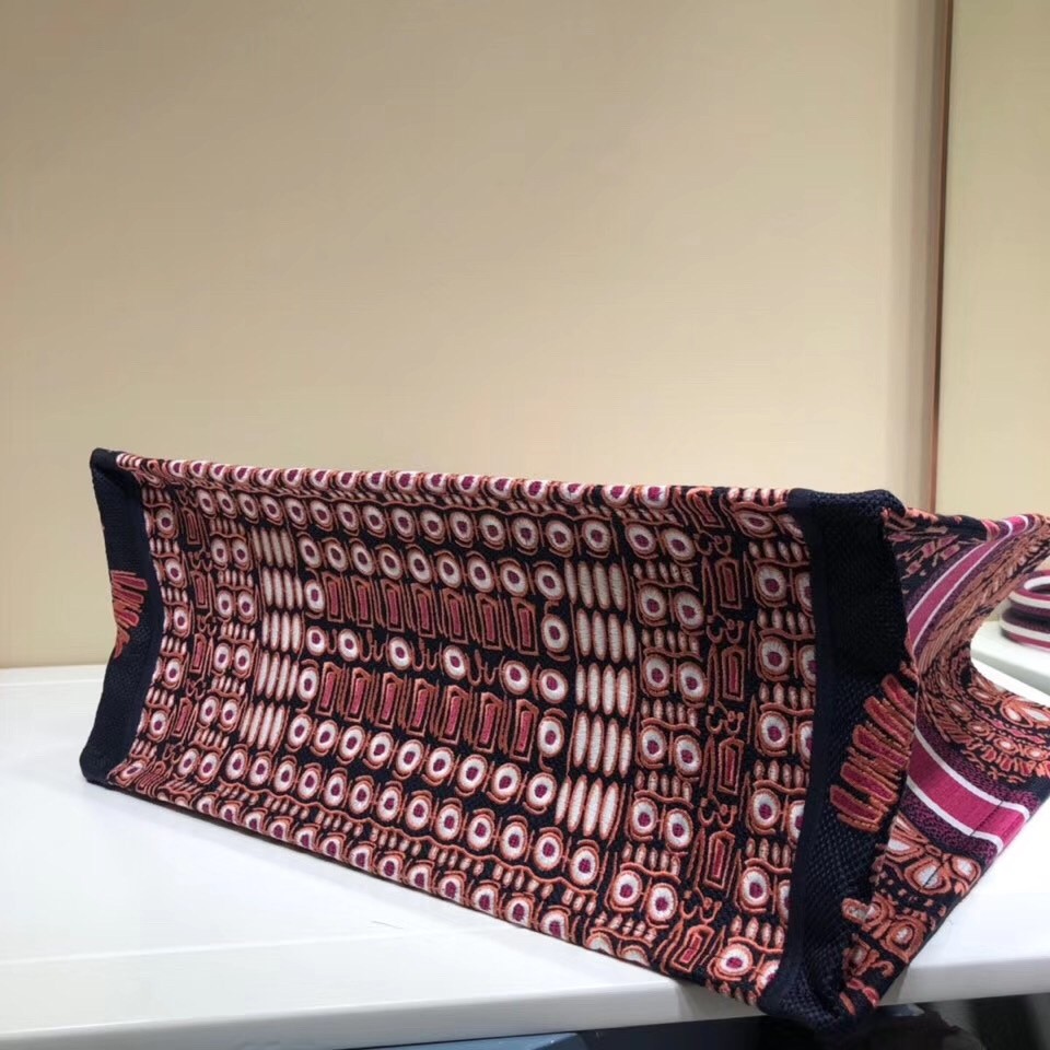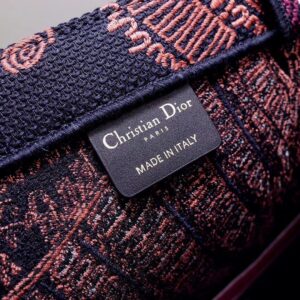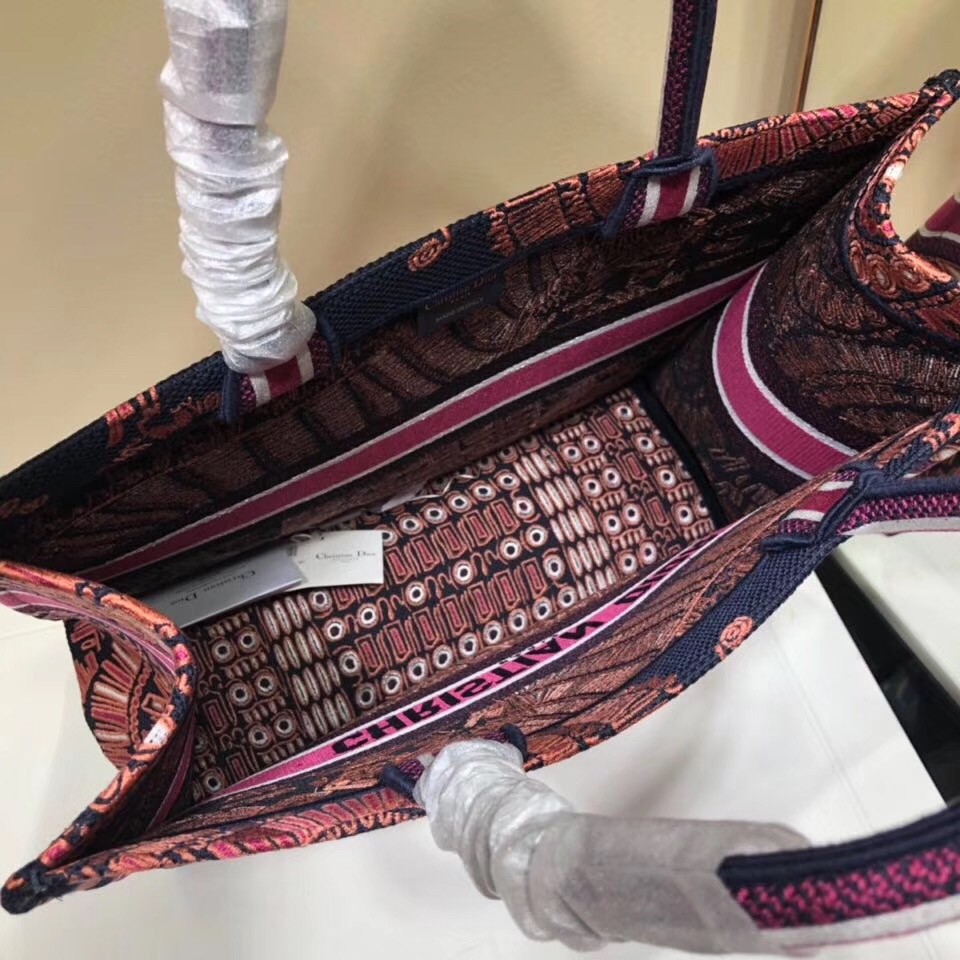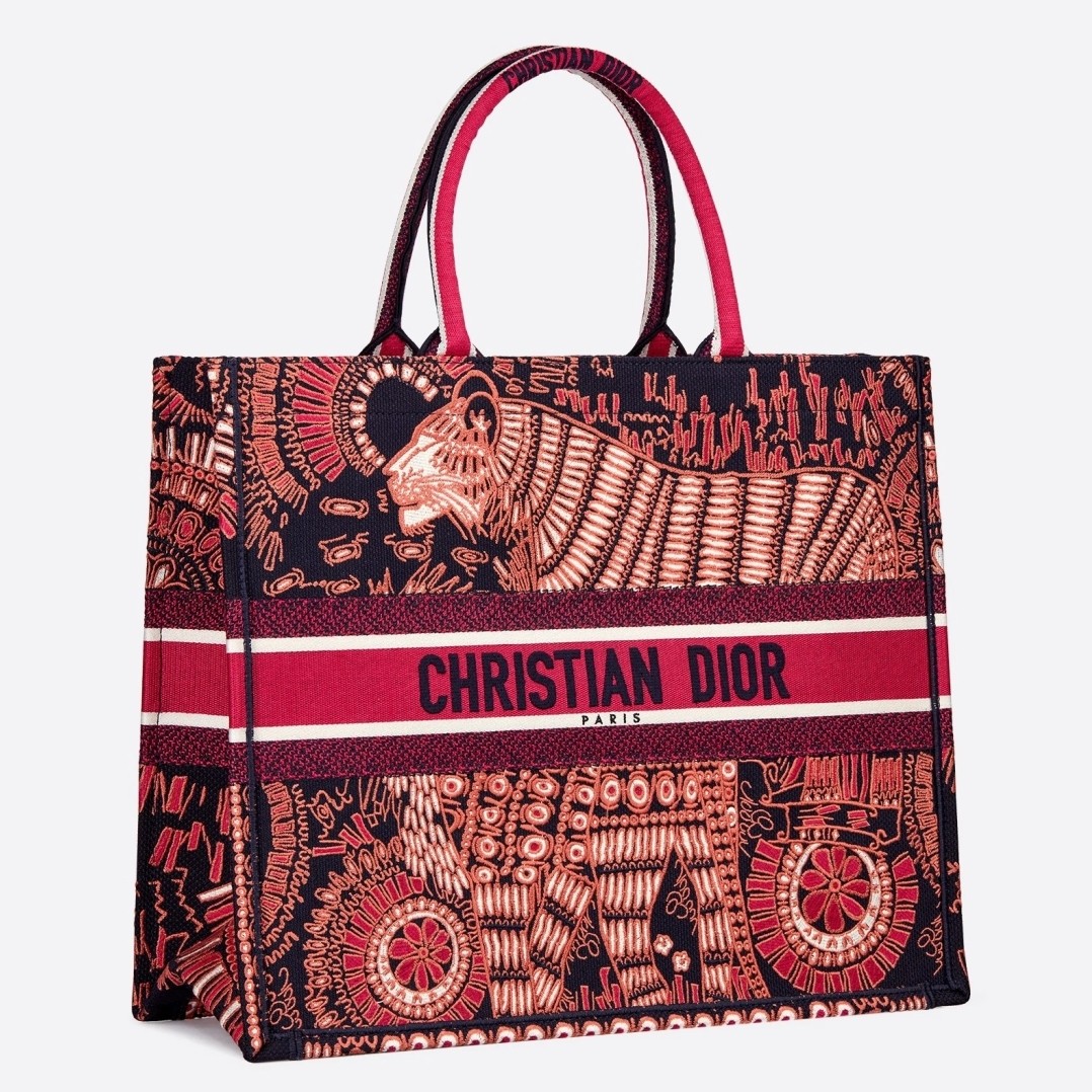 Dior Book Tote Bag In Fuchsia Animals Embroidered Canvas