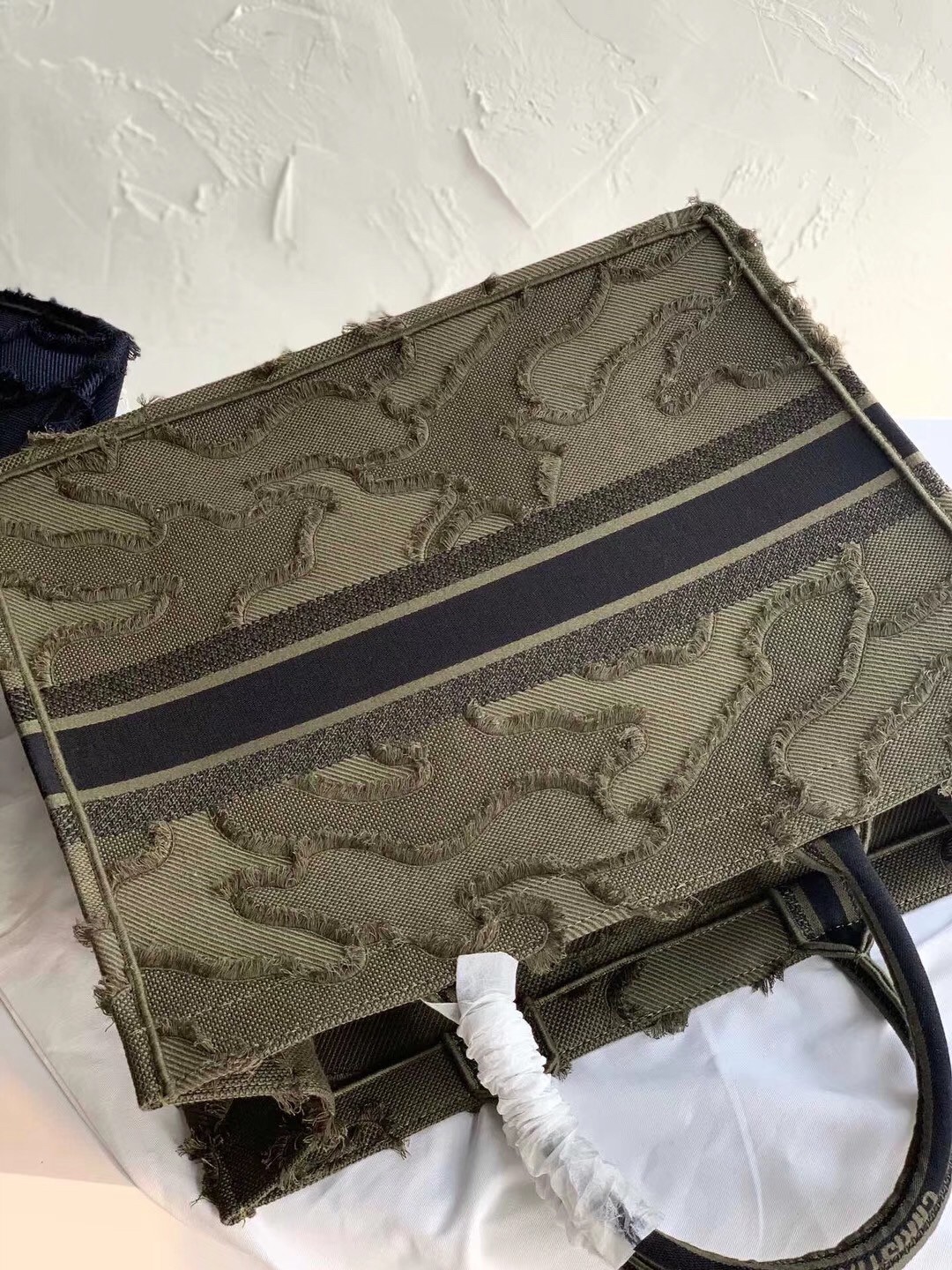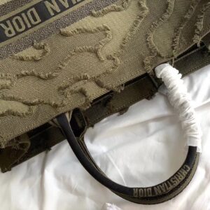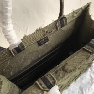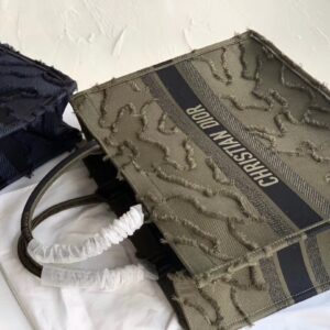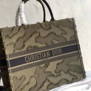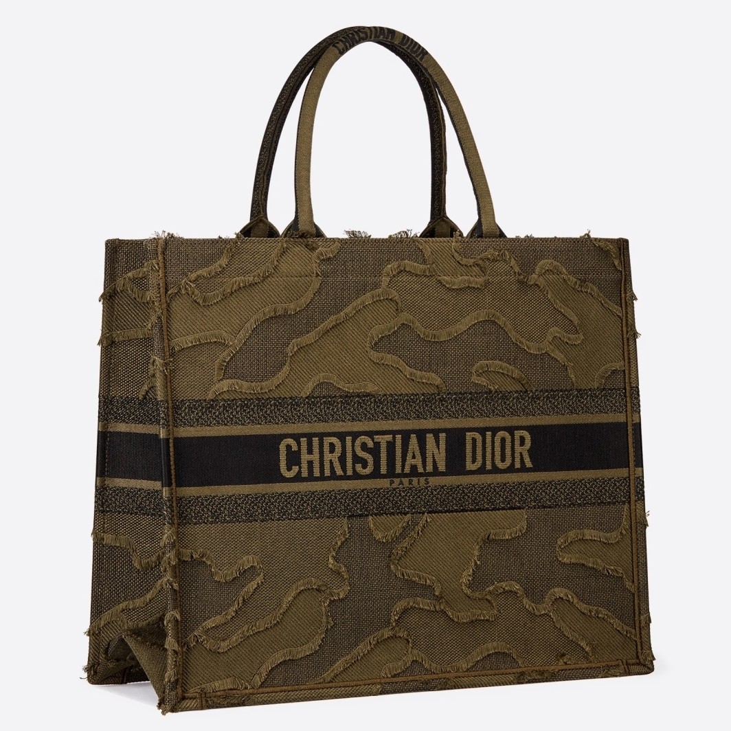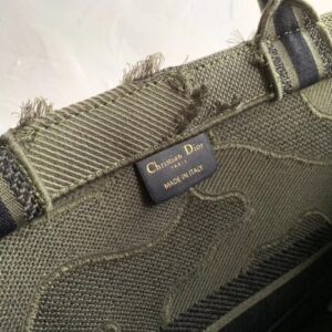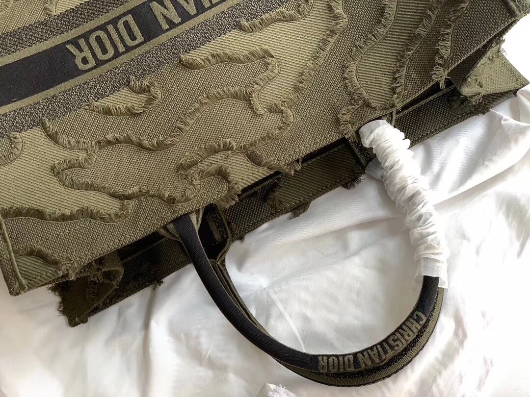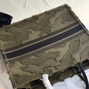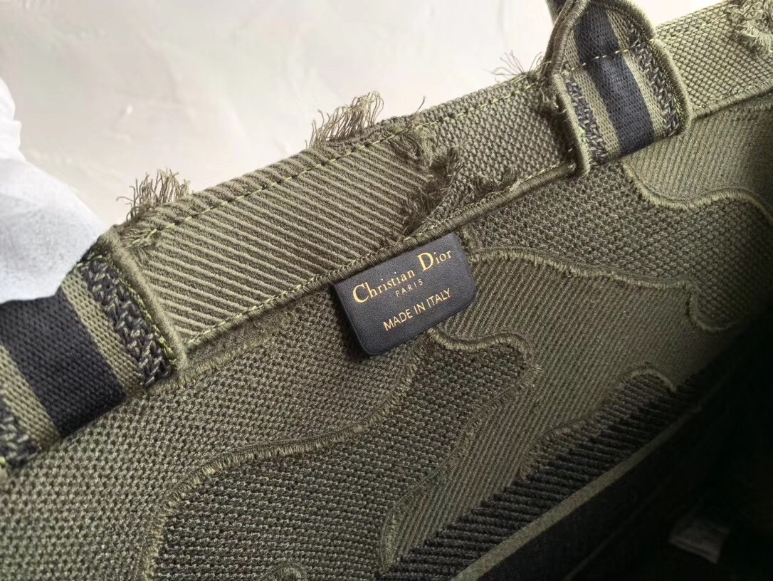 Dior Book Tote Bag In Green Camouflage Embroidered Canvas