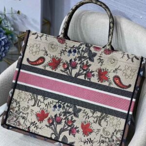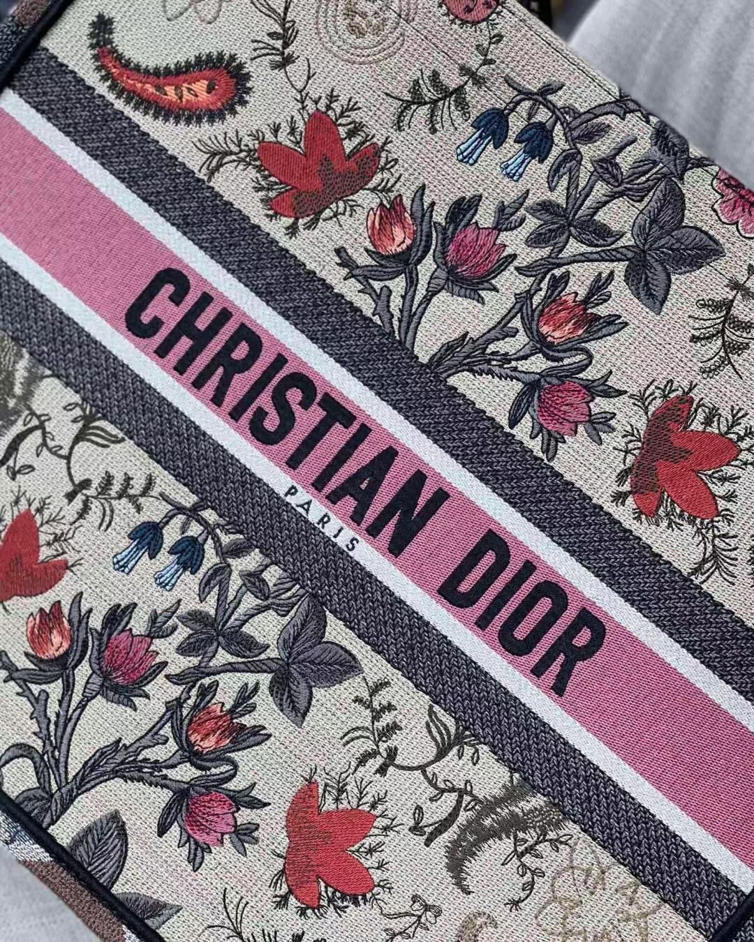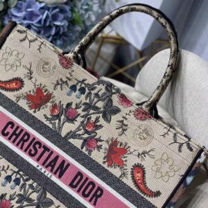 Dior Book Tote Bag In Multicolor Dior Flowers Embroidery