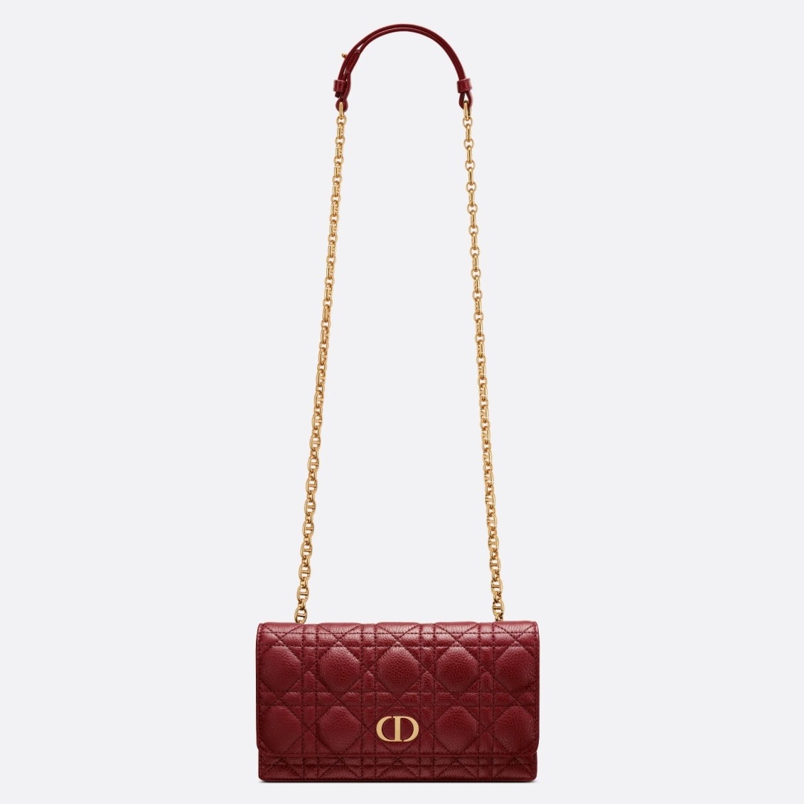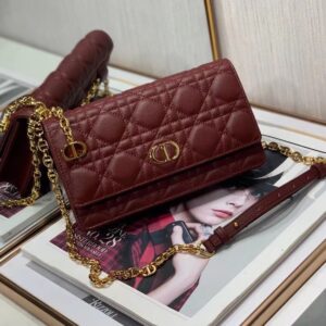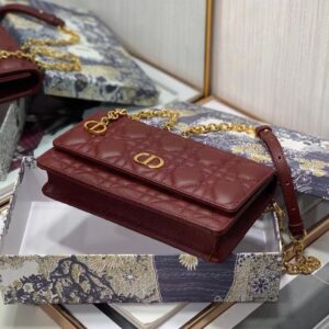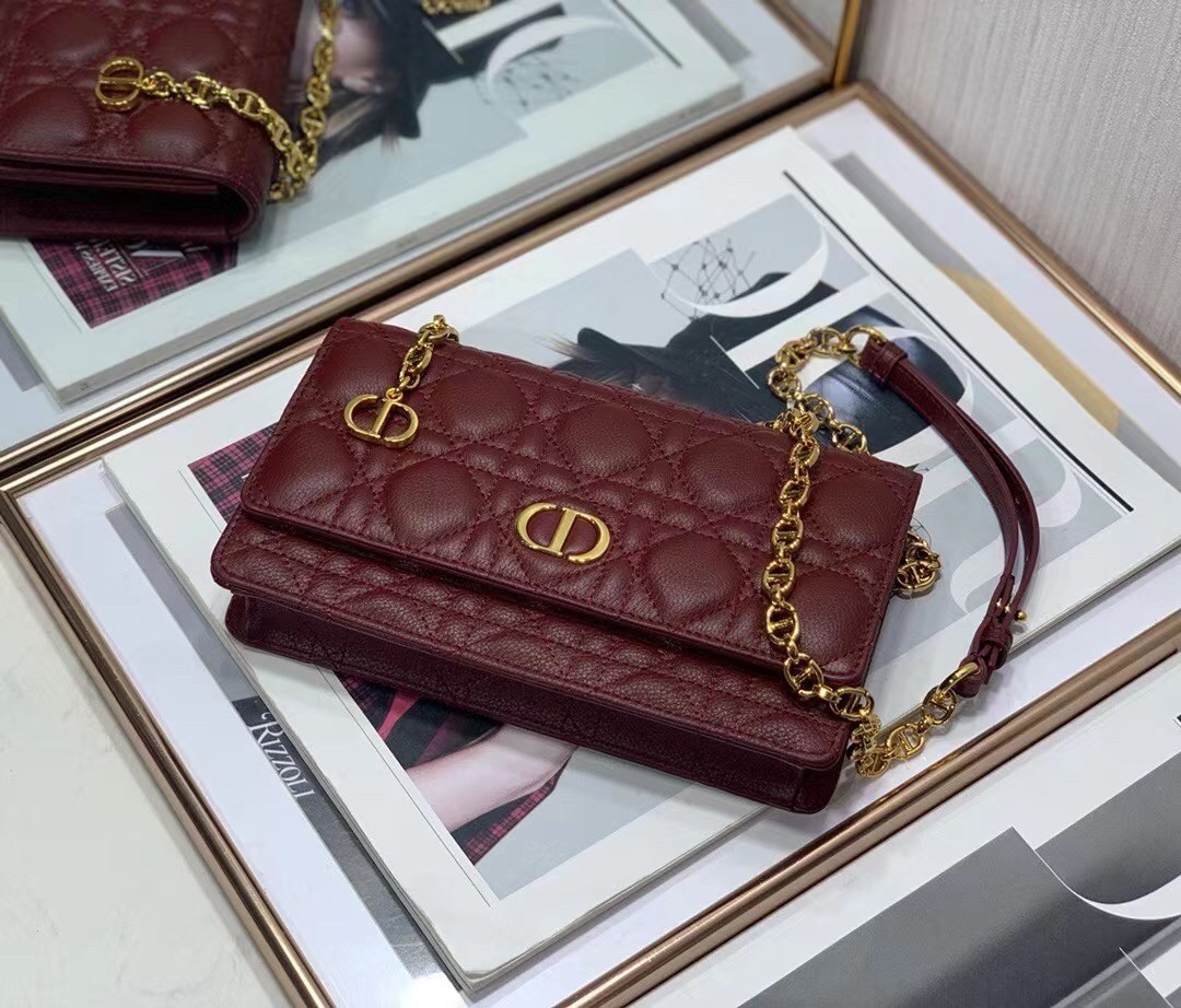Dior Caro Belt Pouch with Chain In Bordeaux Calfskin