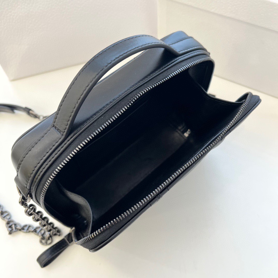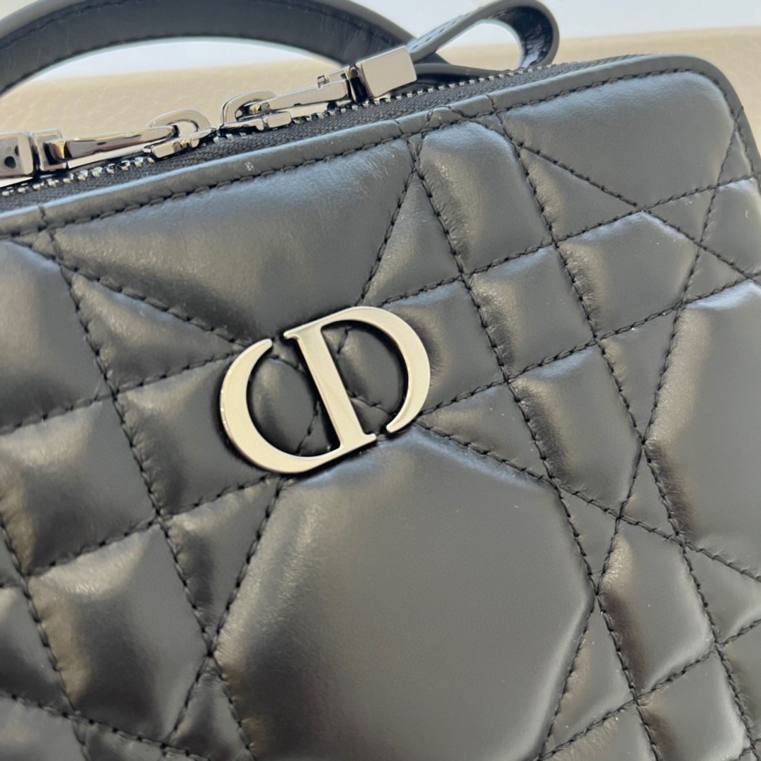 Dior Caro Box Bag with Chain in Black Macrocannage Calfskin